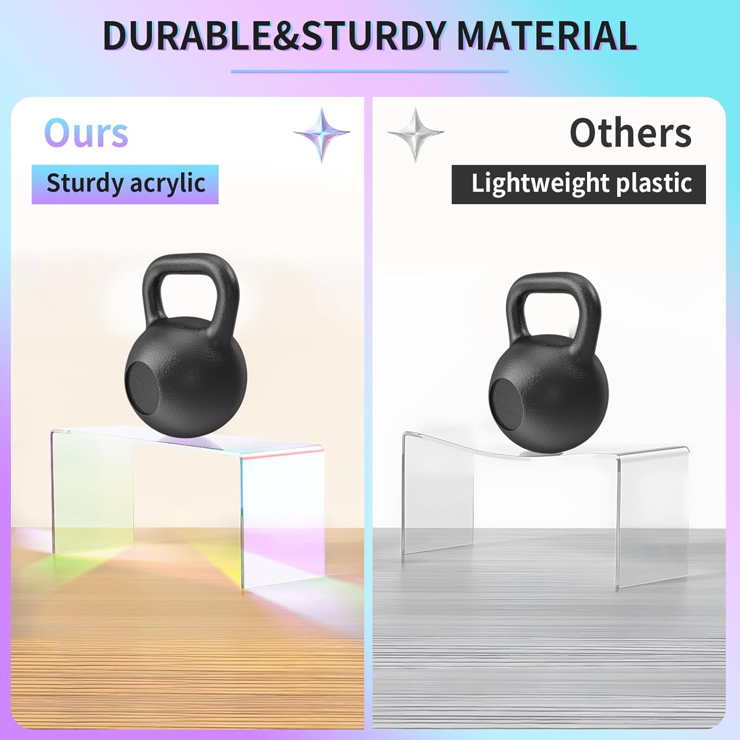 • VERSATILE USES: The iridescent display risers can meet your different needs for displaying and organizing various items such as desserts, jewelry, shoes, cosmetics, perfume,potted plants,collectibles, and more and suitable for living room, bedroom dresser, kitchen, display cabinet. Besides home use, our acrylic display stand can be used in other places, especially for birthday parties, weddings, art exhibitions, buffets and stores.
