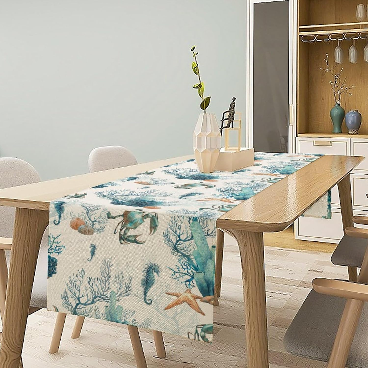 Nautical Coast Table Flag, Ocean Beach Seahorse Shell, Vintage Sailboat Lighthouse Anchor Table Decoration for Indoor and Outdoor Home Party Decor 13x70 Inch
