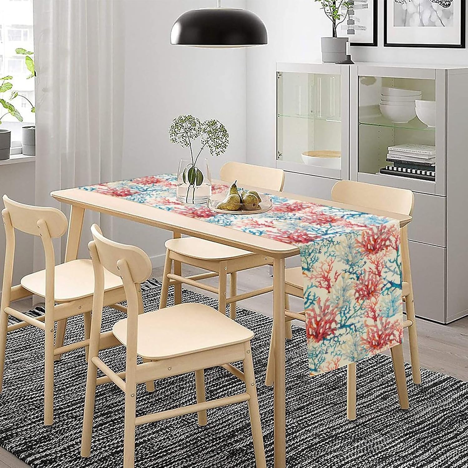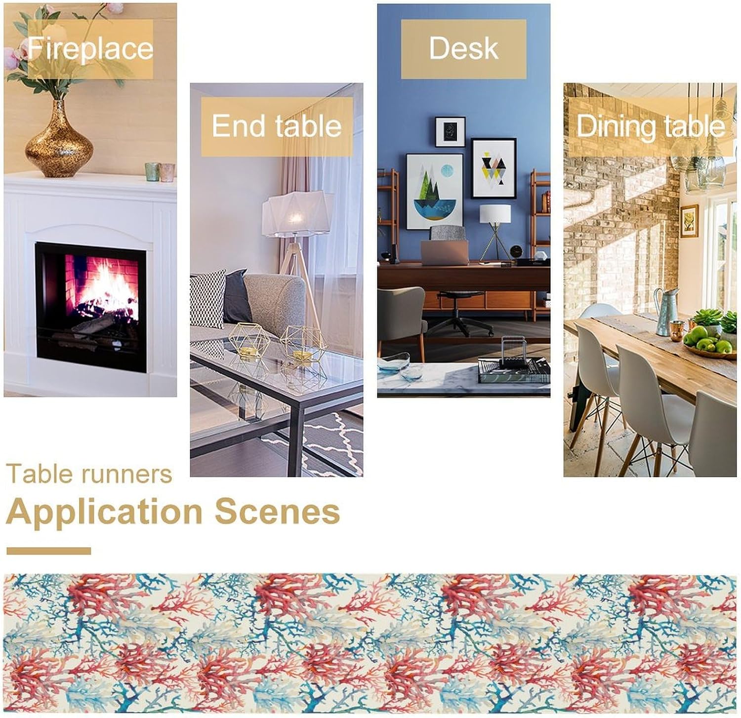 Blue Beach Table Runner, Tropical Ocean Coast Table Runner, Seashell Seasonal Nautical Restaurant Coffee Table Decorations for Home Holiday Party Indoor Outdoor 13x108 Inch