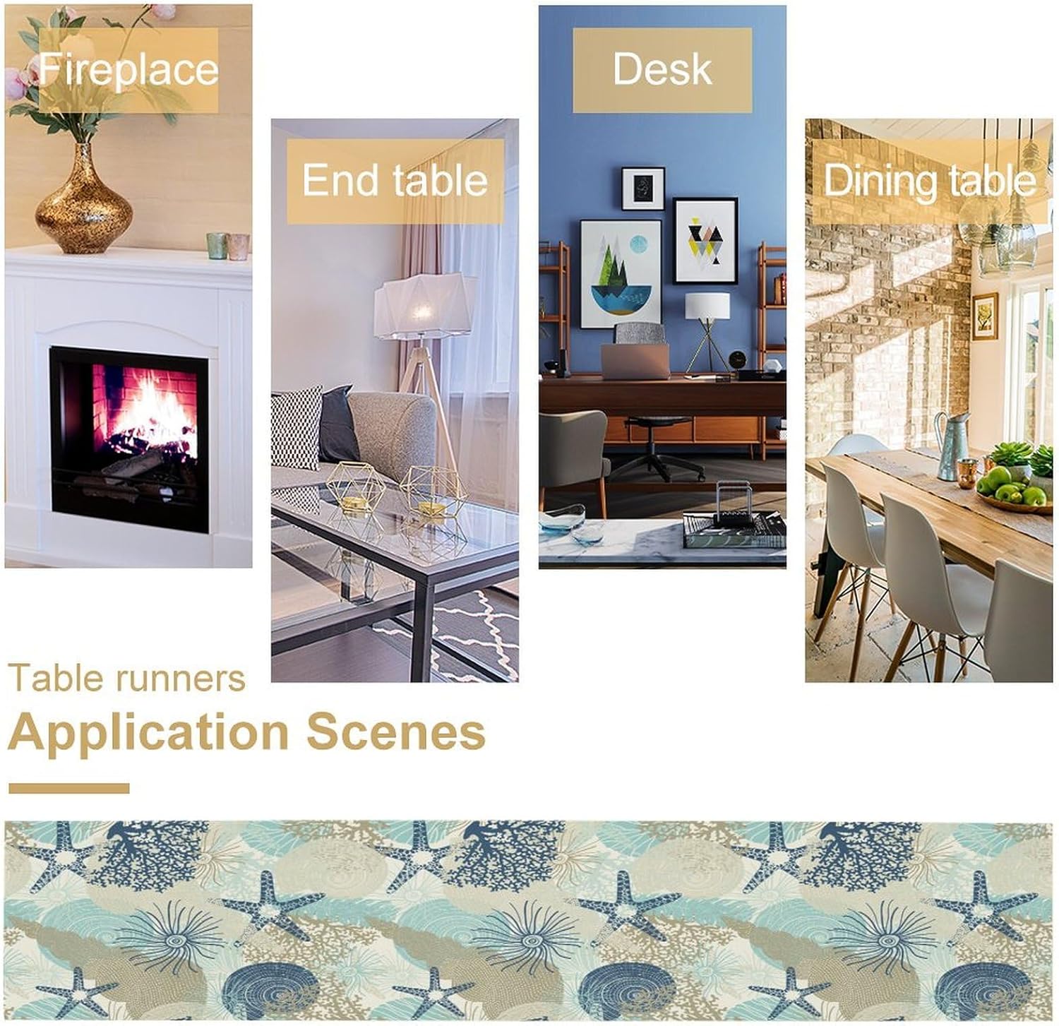 Nautical Coastal Table Runner,Ocean Themed Starfish Coral Conch Beach Kitchen Dinning Table Decoration for Indoor Outdoor Home Party Decor 13x36 Inch