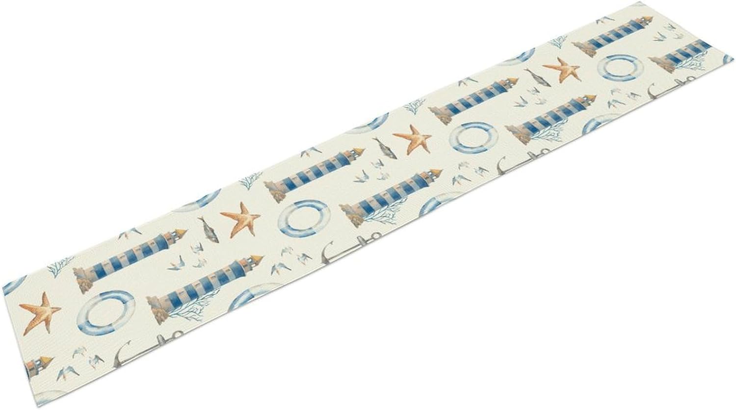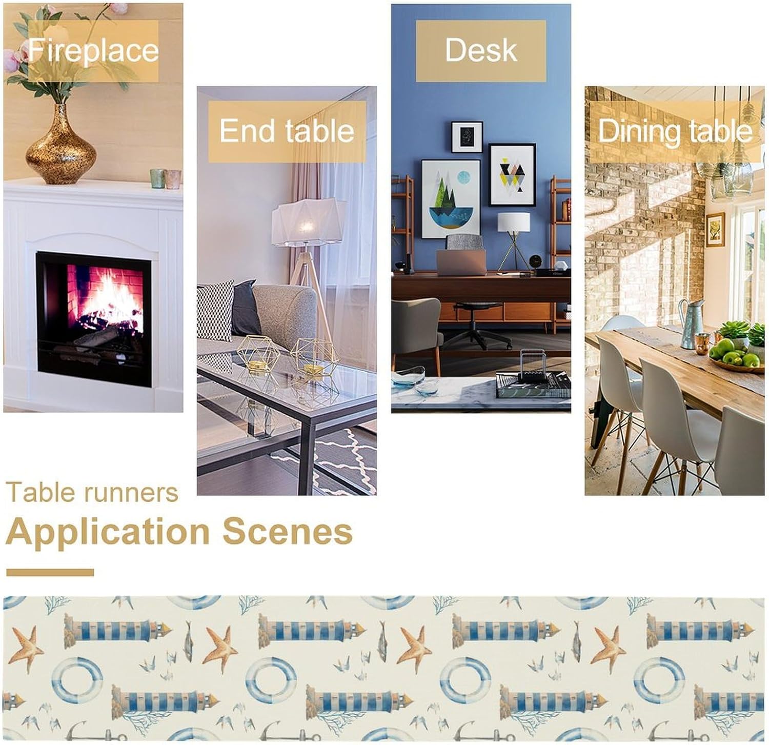 Blue Beach Table Runner, Tropical Ocean Coast Table Runner, Seashell Seasonal Nautical Restaurant Coffee Table Decorations for Home Holiday Party Indoor Outdoor 13x60 Inch