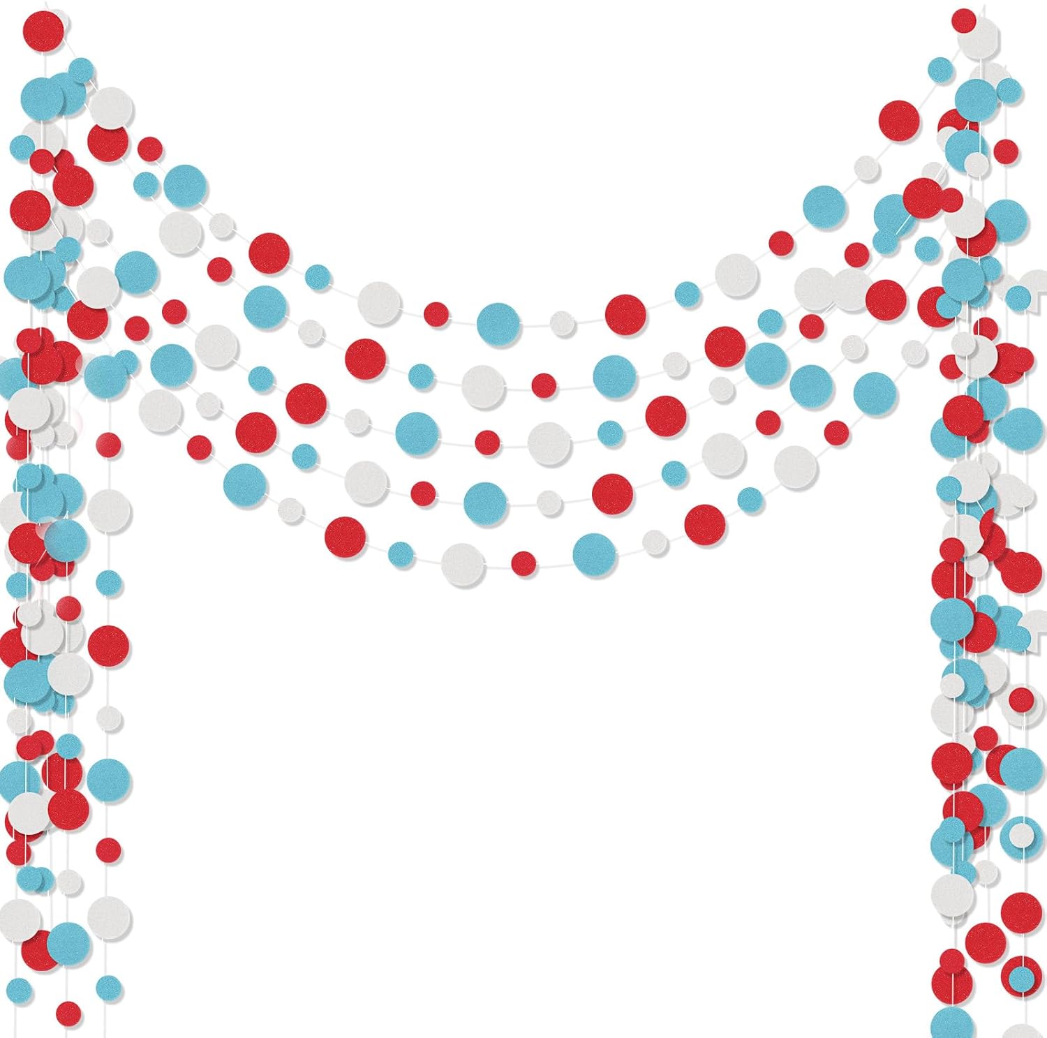 Outus 5 Pieces Colorful Dots Paper Garland Round Glitter Garland Hanging Confetti Streamers Backdrop for Candy Birthday Classroom Halloween Trunk or Treat Car Decoration (Light Blue,White,Red)