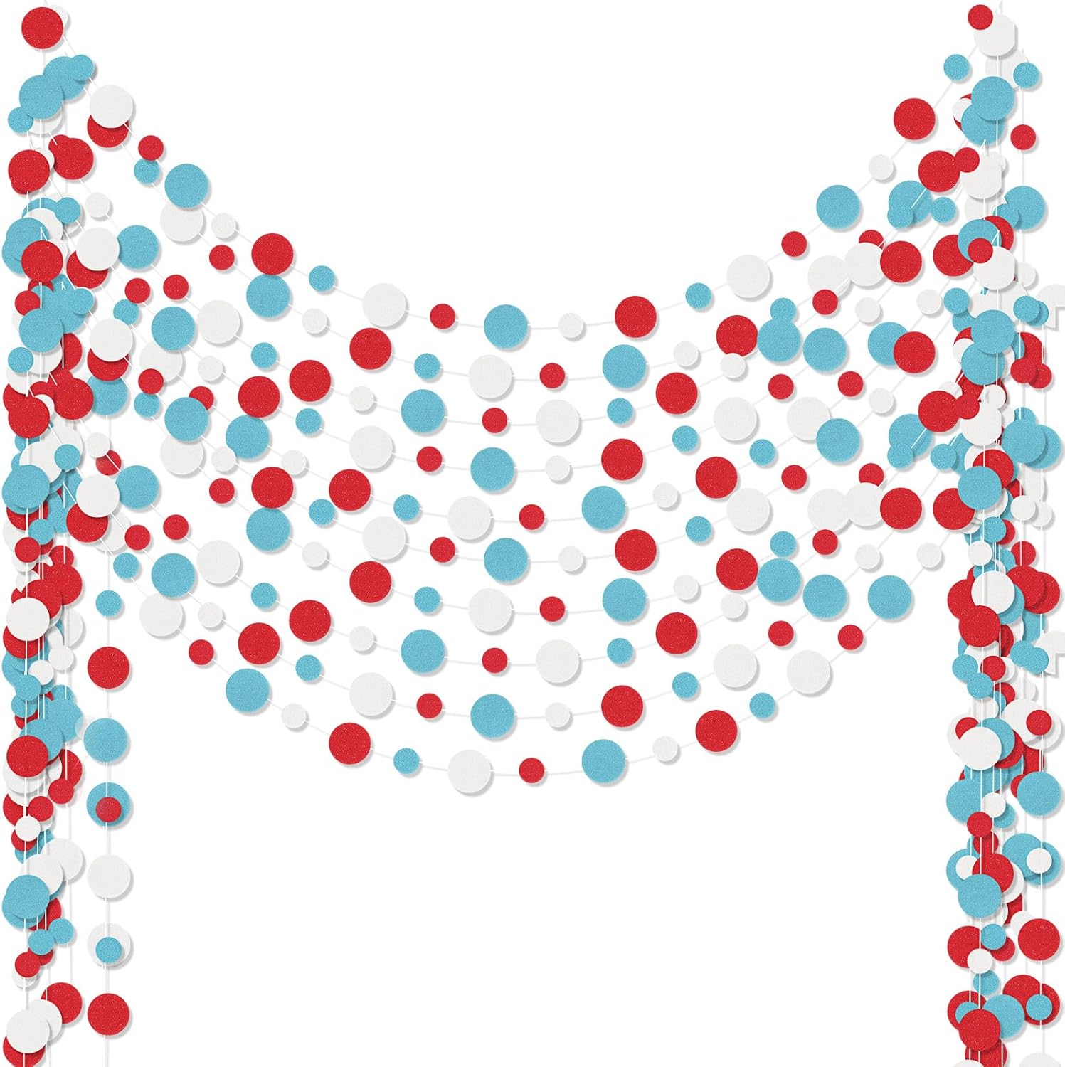 Outus 10 Pieces Colorful Dots Paper Garland Round Glitter Garland Hanging Confetti Streamers Backdrop for Candy Birthday Classroom Halloween Trunk or Treat Car Decoration (Light Blue,White,Red)
