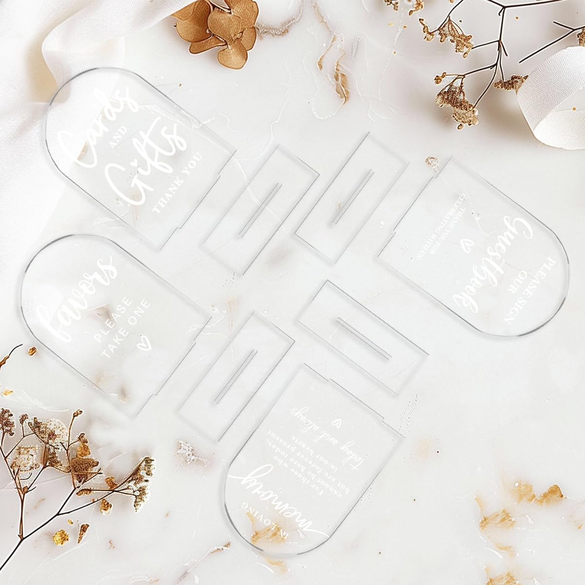4 Pcs Acrylic Wedding Signs for Ceremony and Reception, Bridal Shower Decorations, Cards and Gifts Signs, Guest Book Sign, Arch Acrylic Table Top Sign with Holder for Wedding Reception (Clear)