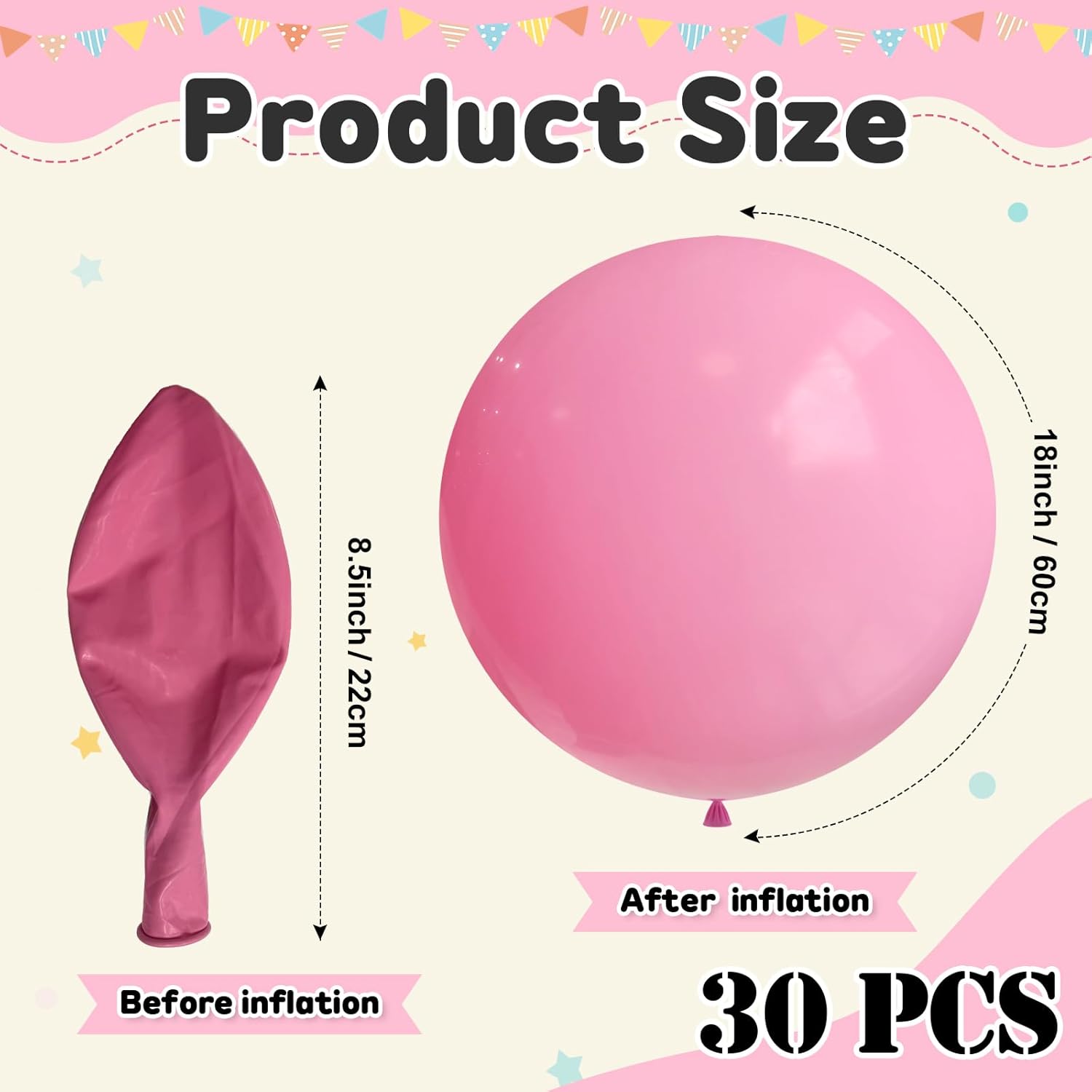 • 【Size& Quantity】Each sets contains 30pcs 18 inch large light pink balloons. Big balloons are safe, heavy thick, bouncy and Eco-friendly latex material which is durable and long-lasting quality, these big round balloons thicker and much strong than typical balloons for longer lasting fun.