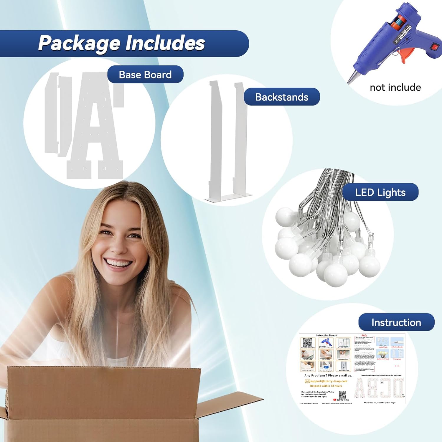 • 【Need to Assemble】: You only need to prepare hot glue gun and glue. Pre-cut Large Light up Letters design making assembly more easier and faster. Just glue the base board and assemble the led string lights. Decorate your party with your child or friends and have fun