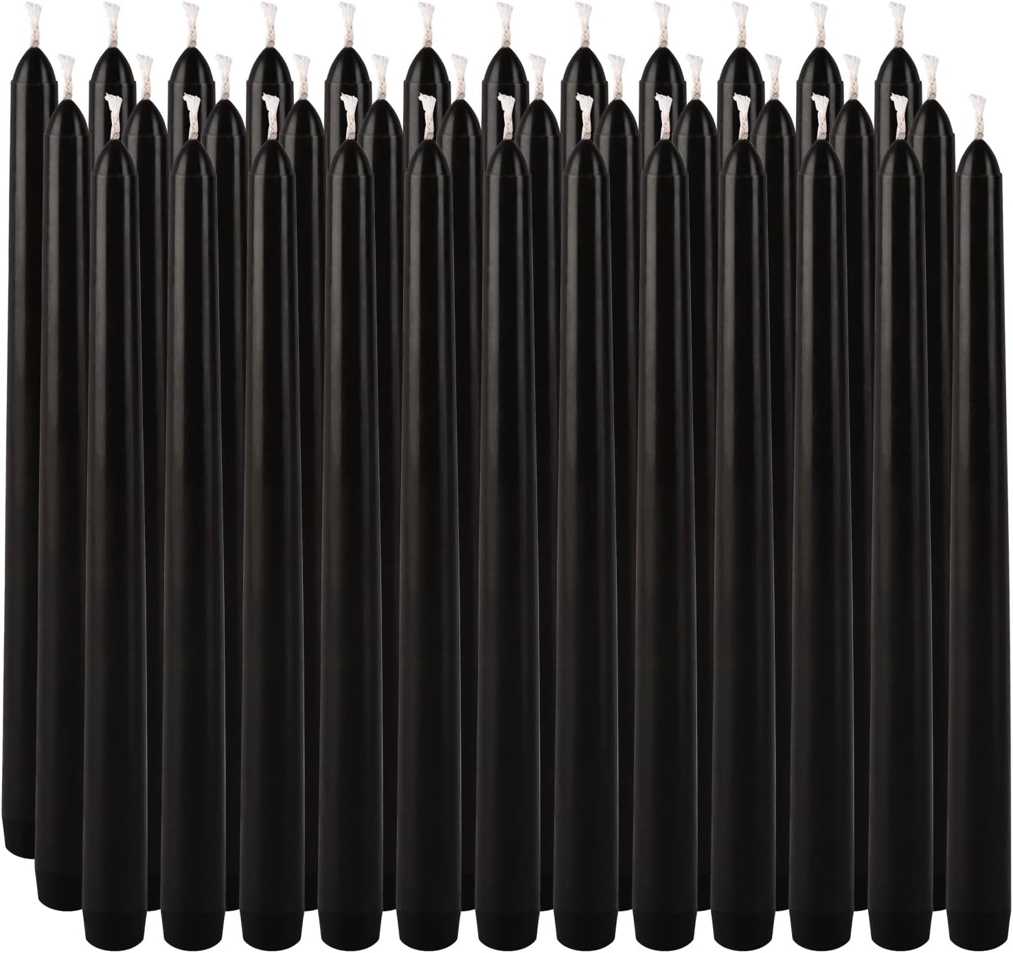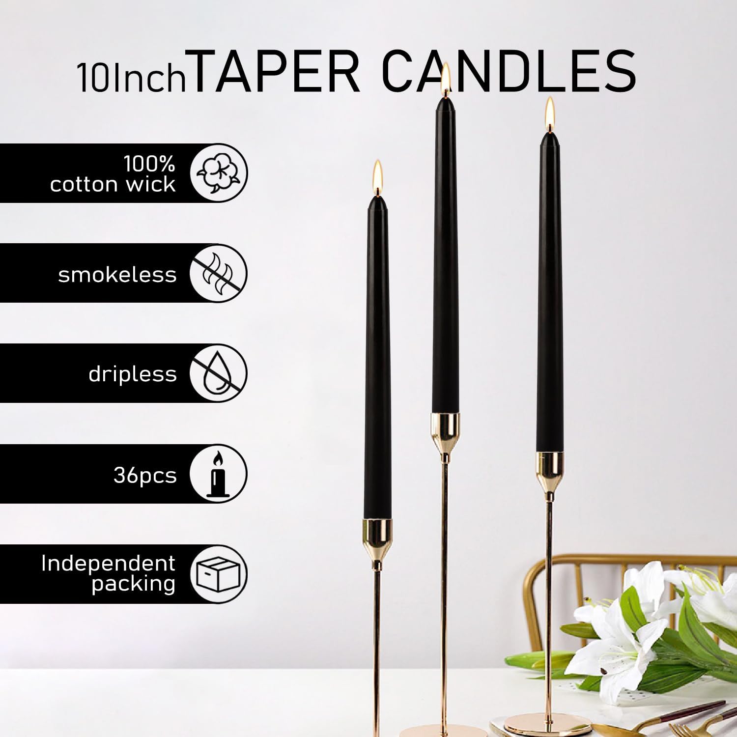 36-Pack 10-Inch Black Taper Candles - Drip-Free Unscented, Long Burning for Dinner Parties, Halloween, Home Decor, Spells & Rituals, Meditation, Prayer (25.4 cm)