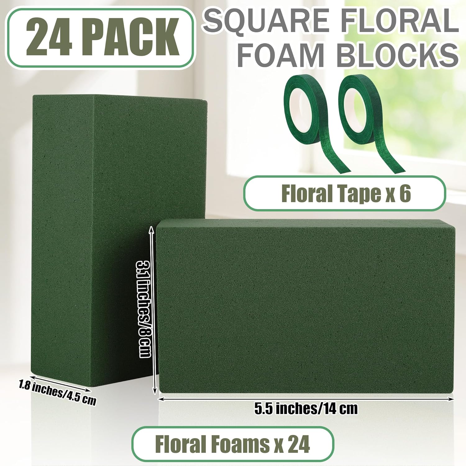 • Complete Floral Arrangement Kit: our floral foam blocks set includes 24 floral foams square, and 6 rolls of green floral tape for all your flower arranging needs. Ideal for both fresh and artificial flowers, this kit supports a variety of creative floral projects; with this set, you'll have all the essential tools to start your floral projects right away