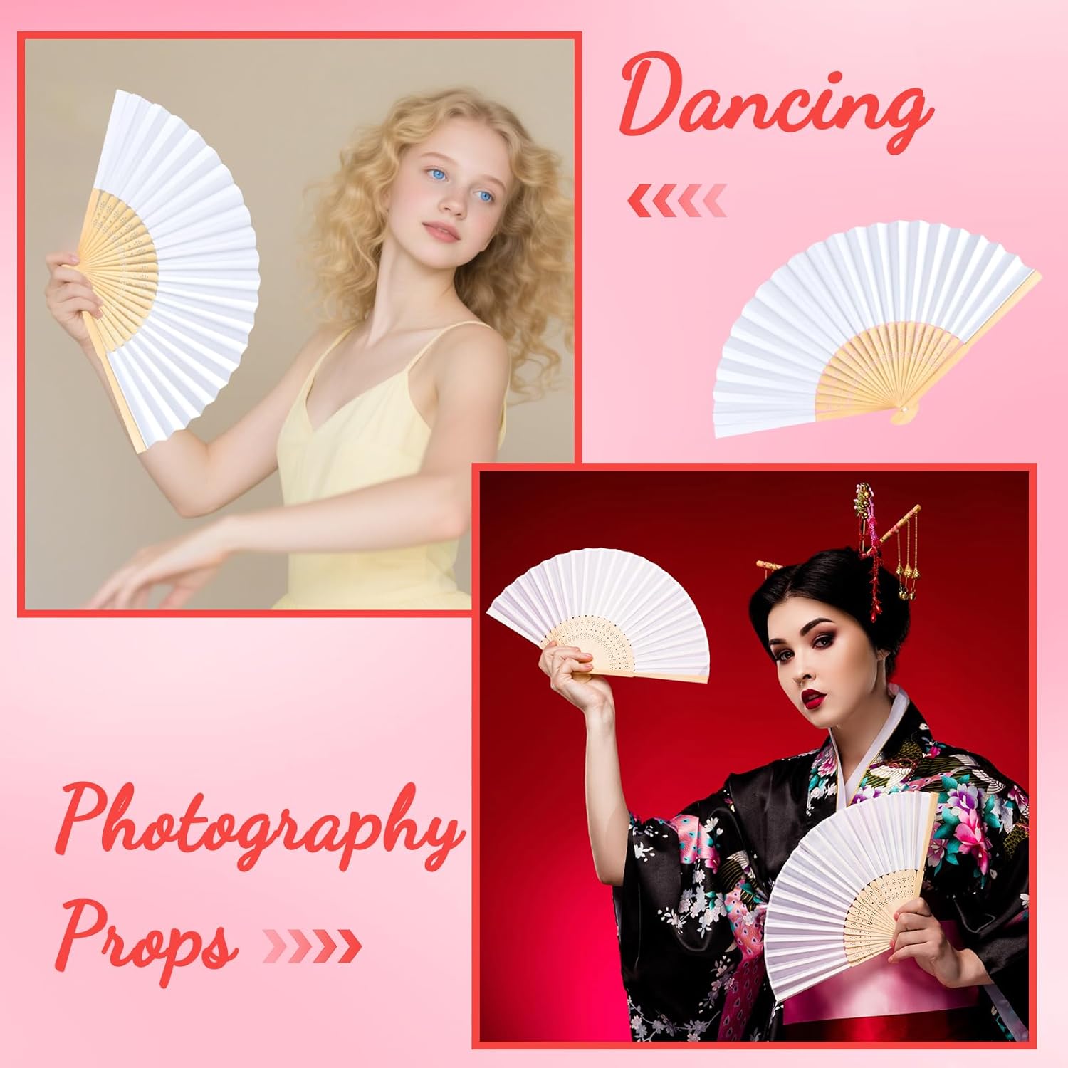 • Widely Used: These hand held bamboo fans are perfect for various occasions, wedding decoration, outdoor party favors, DIY decoration, dancing props, photography props, etc, they also can be used for cooling yourself in hot days