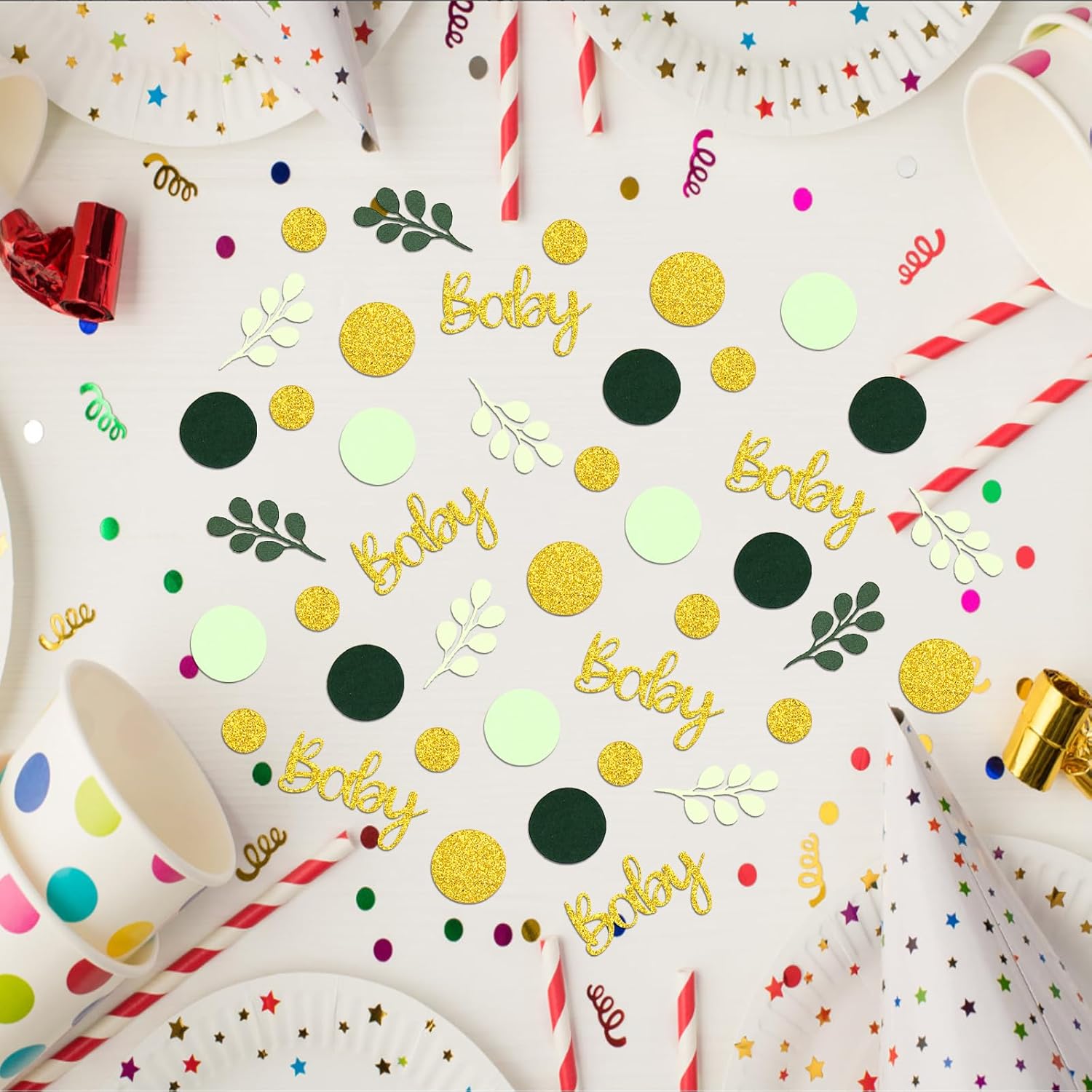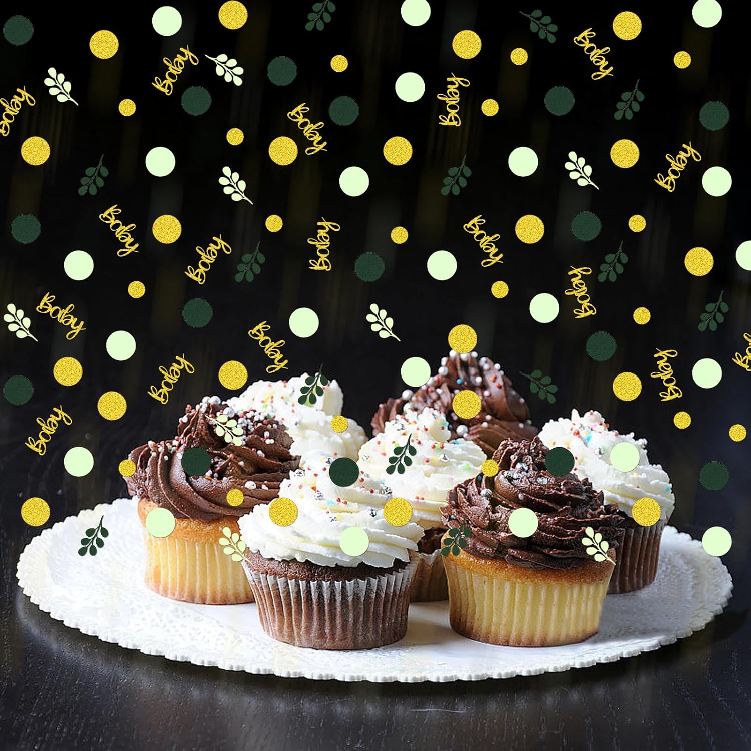 300PC Greenery Baby Shower Confetti for Gender Neutral Baby Shower Decorations Gold and Sage Green Circle Dots Table Confetti Scatter for Nature Girl Boy Birthday Gender Reveal Party Decor
