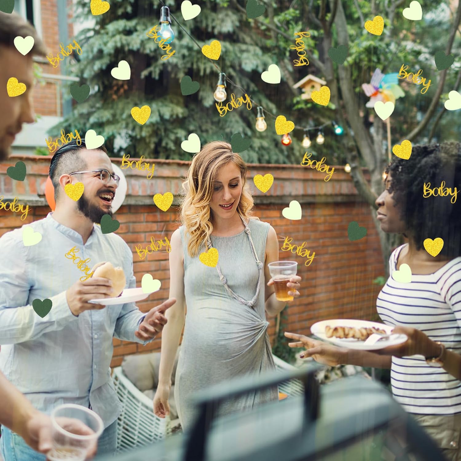 200PC Sage Green Baby Shower Confetti Green Gold Glitter Heart Table Confetti for Greenery Gender Neutral Baby Shower Decorations