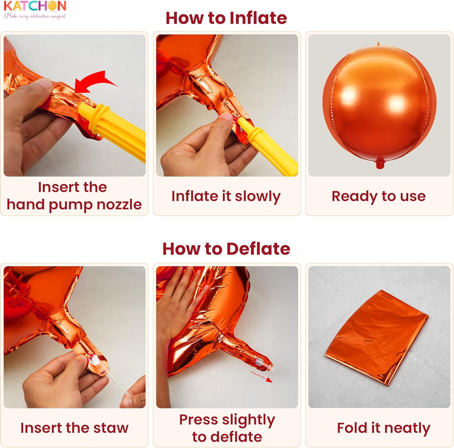Katchon, Huge, Metallic Orange and Black 4D Foil Balloons -22 Inch-pack of 6 | Halloween Decorations Indoor with Halloween Balloons | Fall Decorations For Home, Thanksgiving decorations Indoor