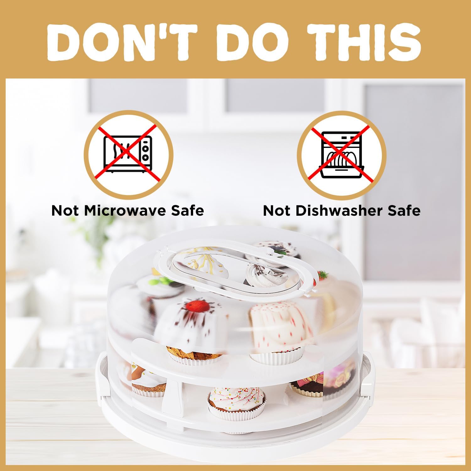 Round Cupcake Carrier for Transport, Two Tier Cupcake Container with Lid and Handle, Multipurpose Cake Holder fits 10 inch Cake, Cupcake Box Holds 14 Standard Cupcakes,White
