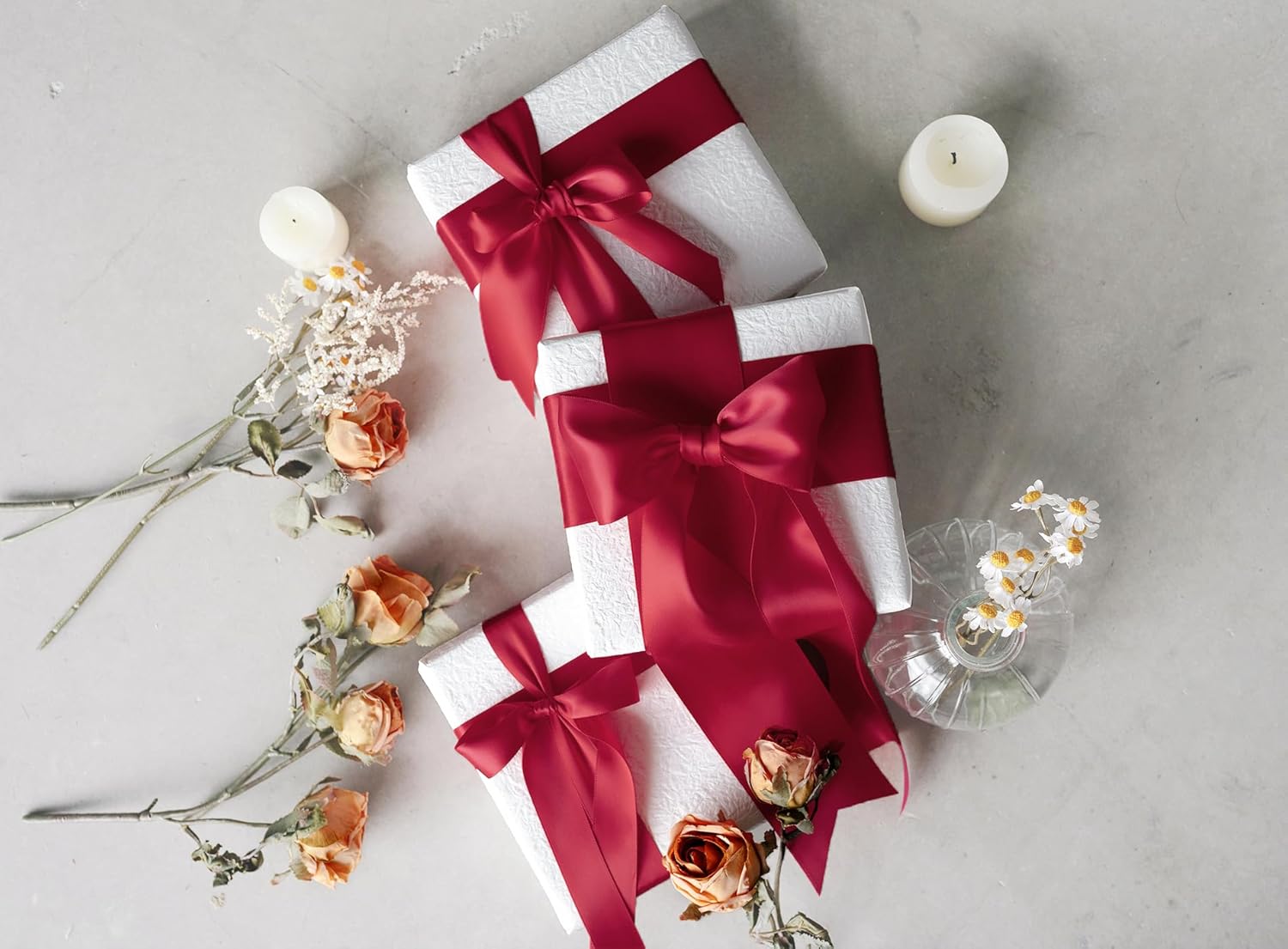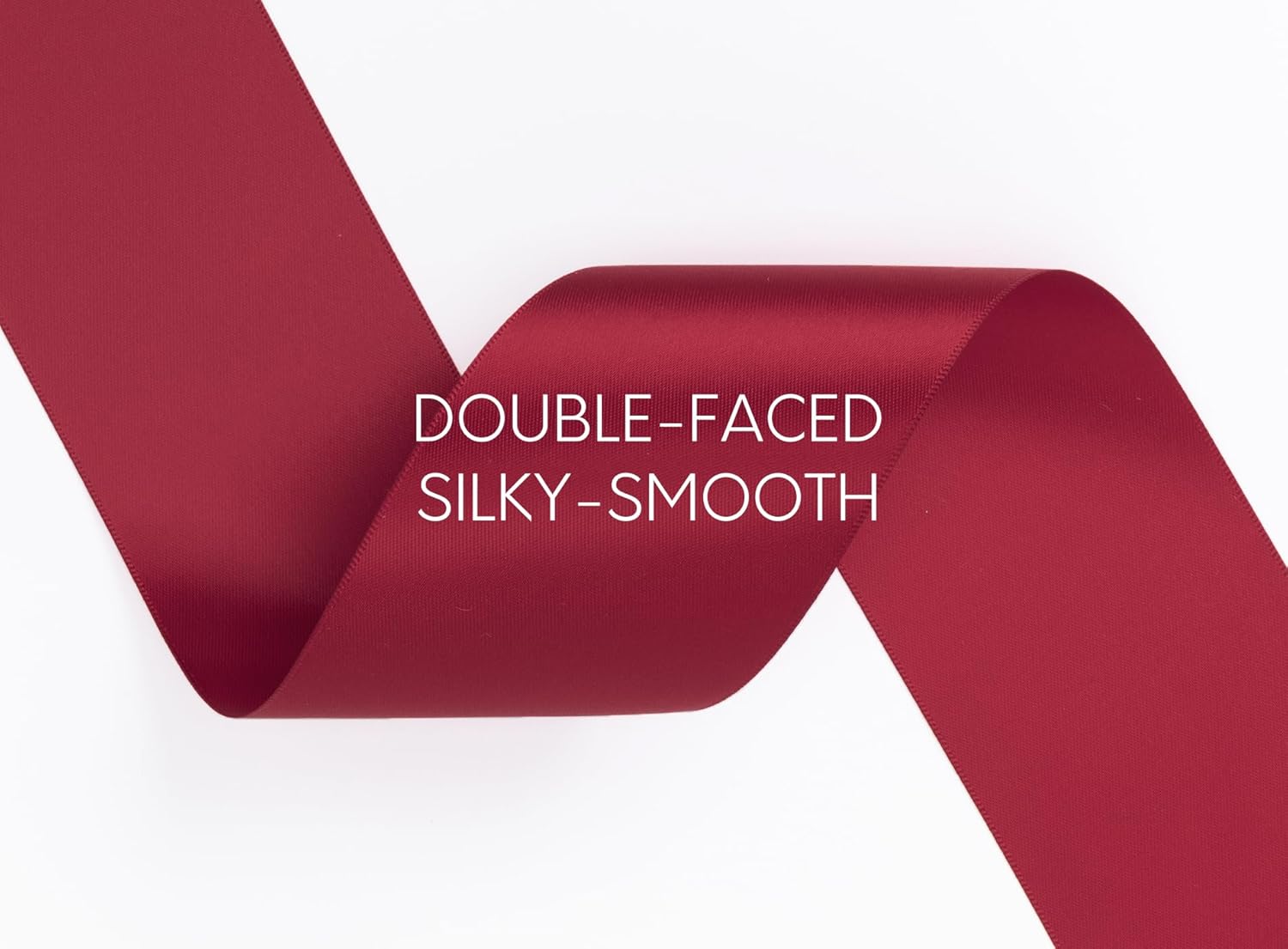 Burgundy Satin Ribbon 2.5 Inch Double-Faced Ribbons 25 Yards for Christmas Gift Wrapping Flower Bouquet Wedding Paper Bows Invitations Crafts