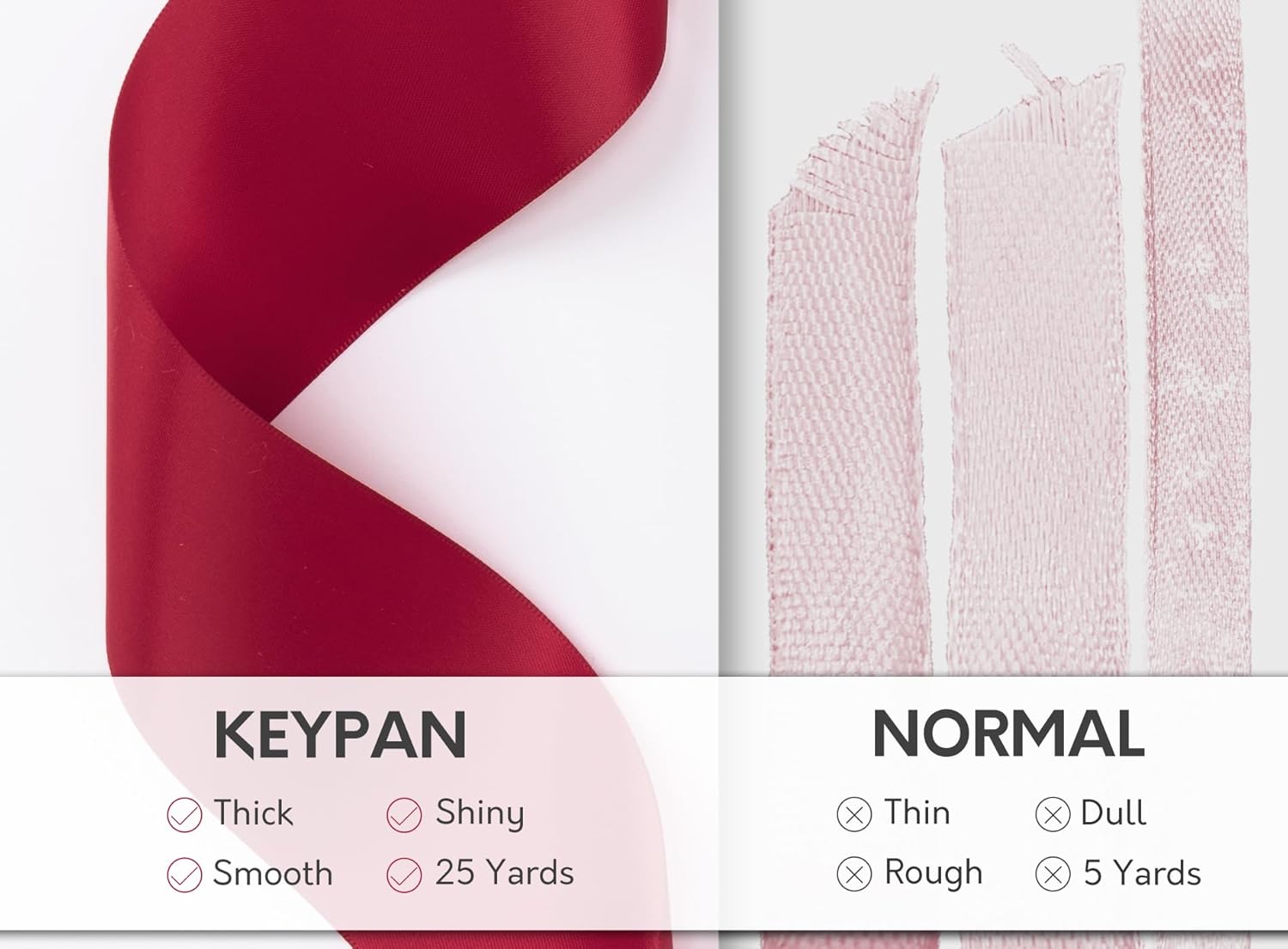 • ELEGANT LUSTROUS SHINE: This satin ribbon has a double-faced backing of high-quality, smooth and shiny polyester satin with a luxurious feel. The ribbon edges are neatly sewn. It is great for adding an elegant touch to your home decor and Christmas tree