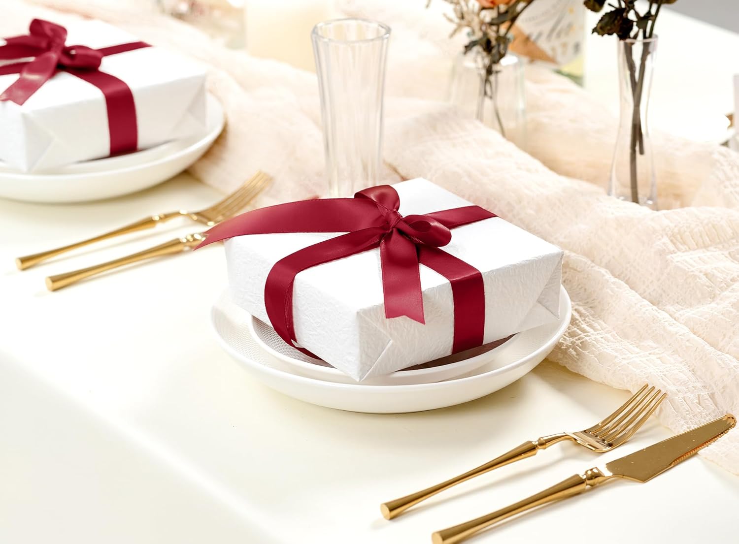 • VARIOUS USAGE: This shiny satin ribbon is a good choice for decorating gifts and home during regular times. It is suitable for flower bouquets, wreaths, gift wrapping, craft projects, headbands, hair ties, Christmas tree decorations, craft projects