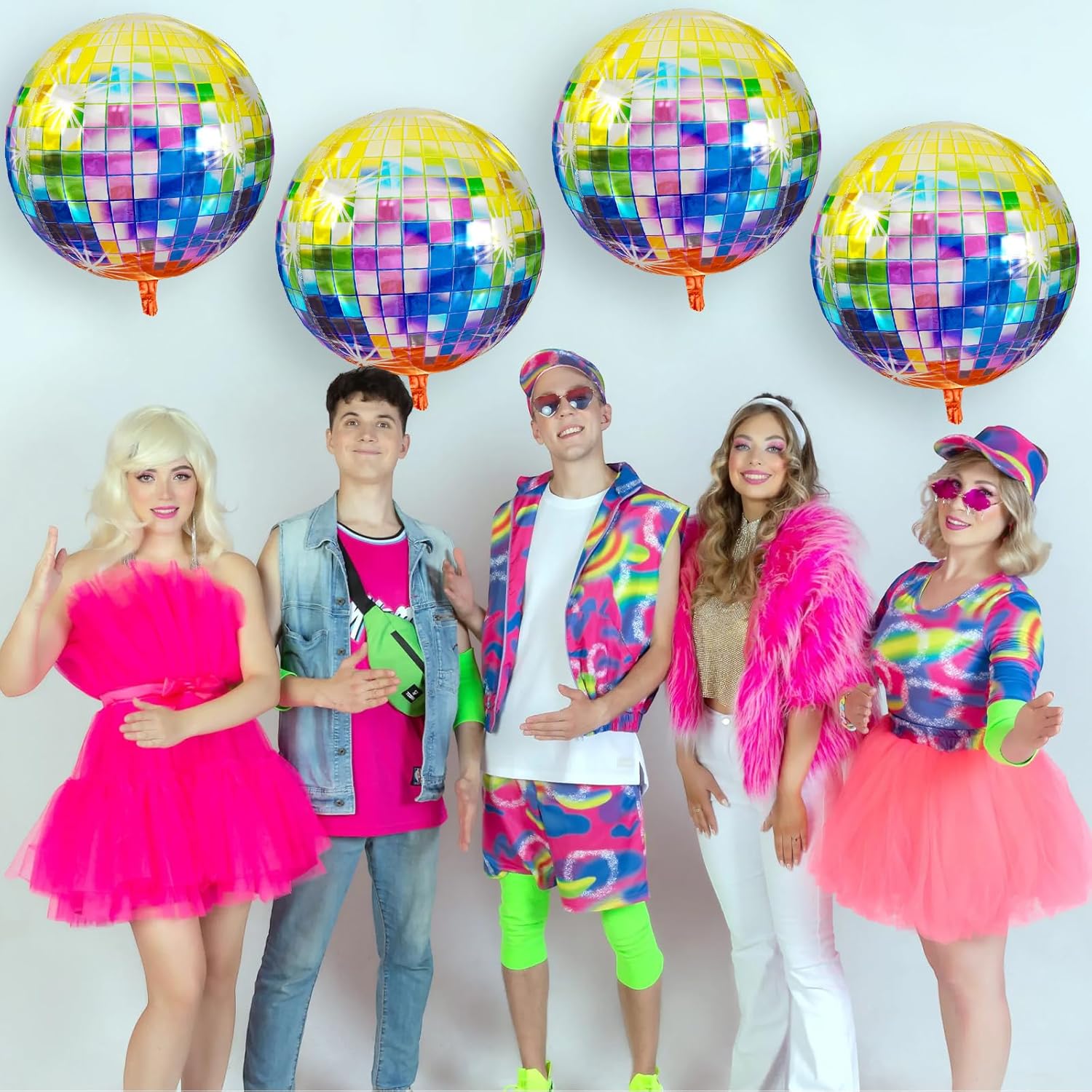 • EASY TO USE:These disco ball decorations balloons can be filled with air or helium.pinch the inflation port of the disco balloon to seal it.the set comes with a straw and ribbon,after the party is over,use the straw to deflate by inserting it into the inflation port,balloons can be reused