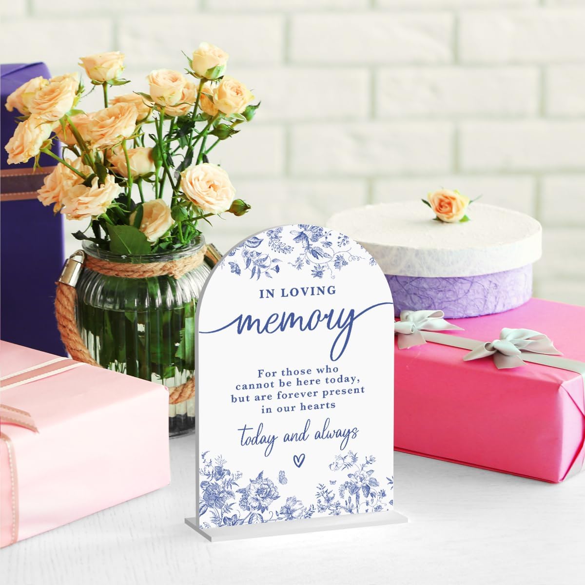 Acrylic Wedding Signs, Dusty Blue Wedding Decor, Blue Weddings Decor, In Loving Memory Signs for Reception, Modern Calligraphy Arch Acrylic Table Top Sign for Weddings Parties Dinners (White)
