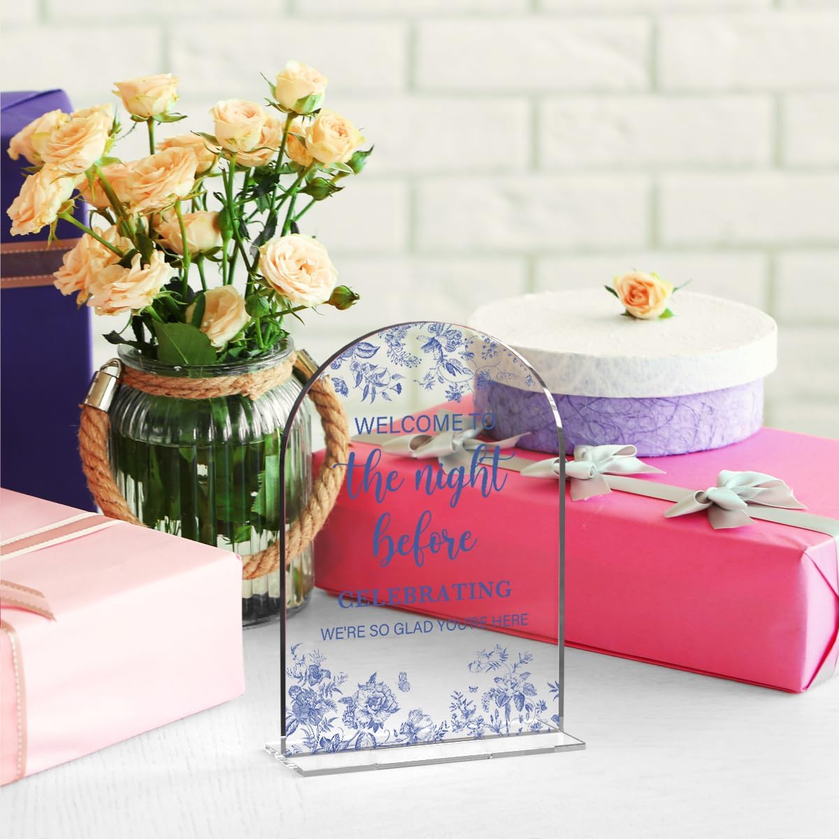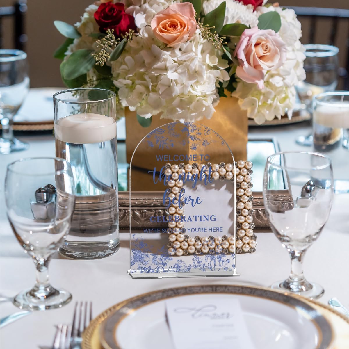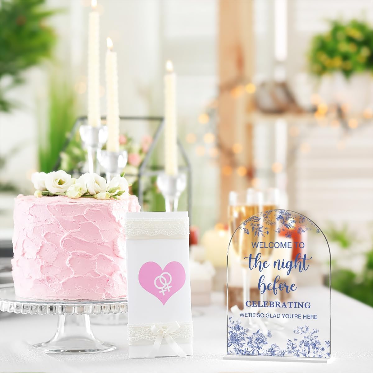 Acrylic Wedding Signs, Dusty Blue Wedding Decor, Blue Weddings Decor, Modern Calligraphy Arch Acrylic Table Top Sign for Weddings Parties Dinners - Welcome to The Night Befor (Clear)