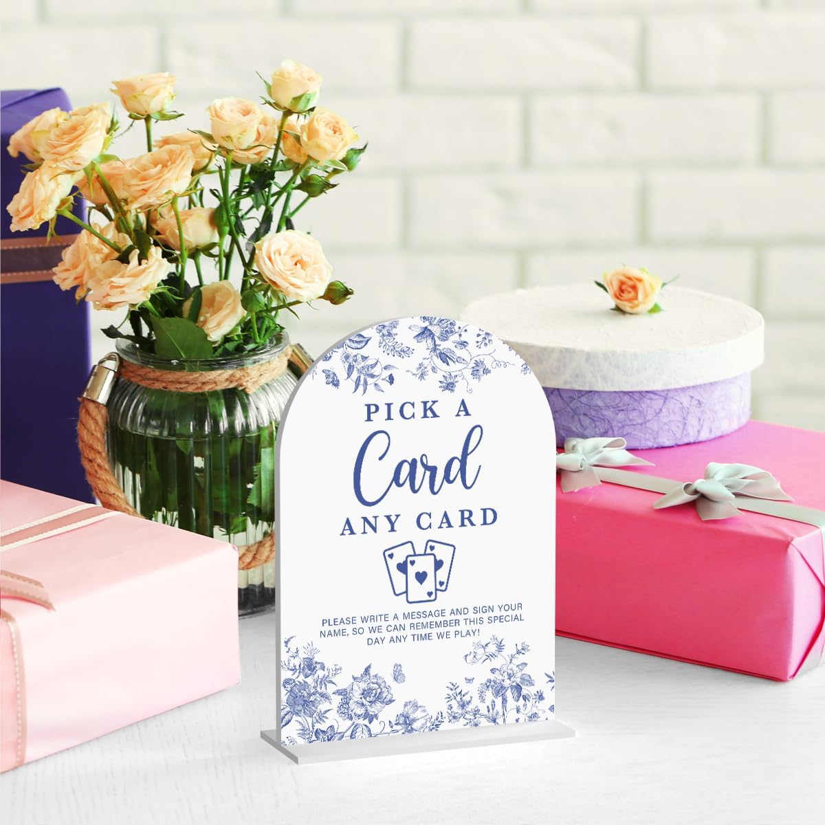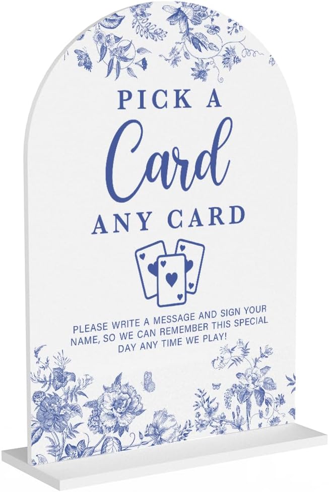 Acrylic Wedding Signs, Dusty Blue Wedding Decor, Blue Weddings Decor, Pick A Card Signs for Reception, Modern Calligraphy Arch Acrylic Table Top Sign for Weddings Parties Dinners (White)