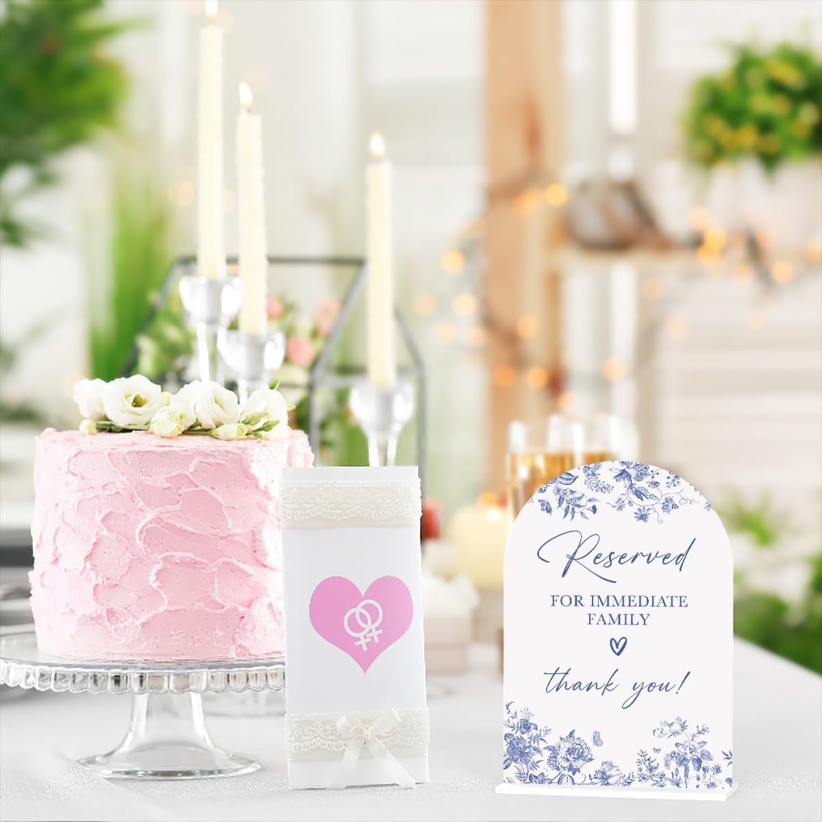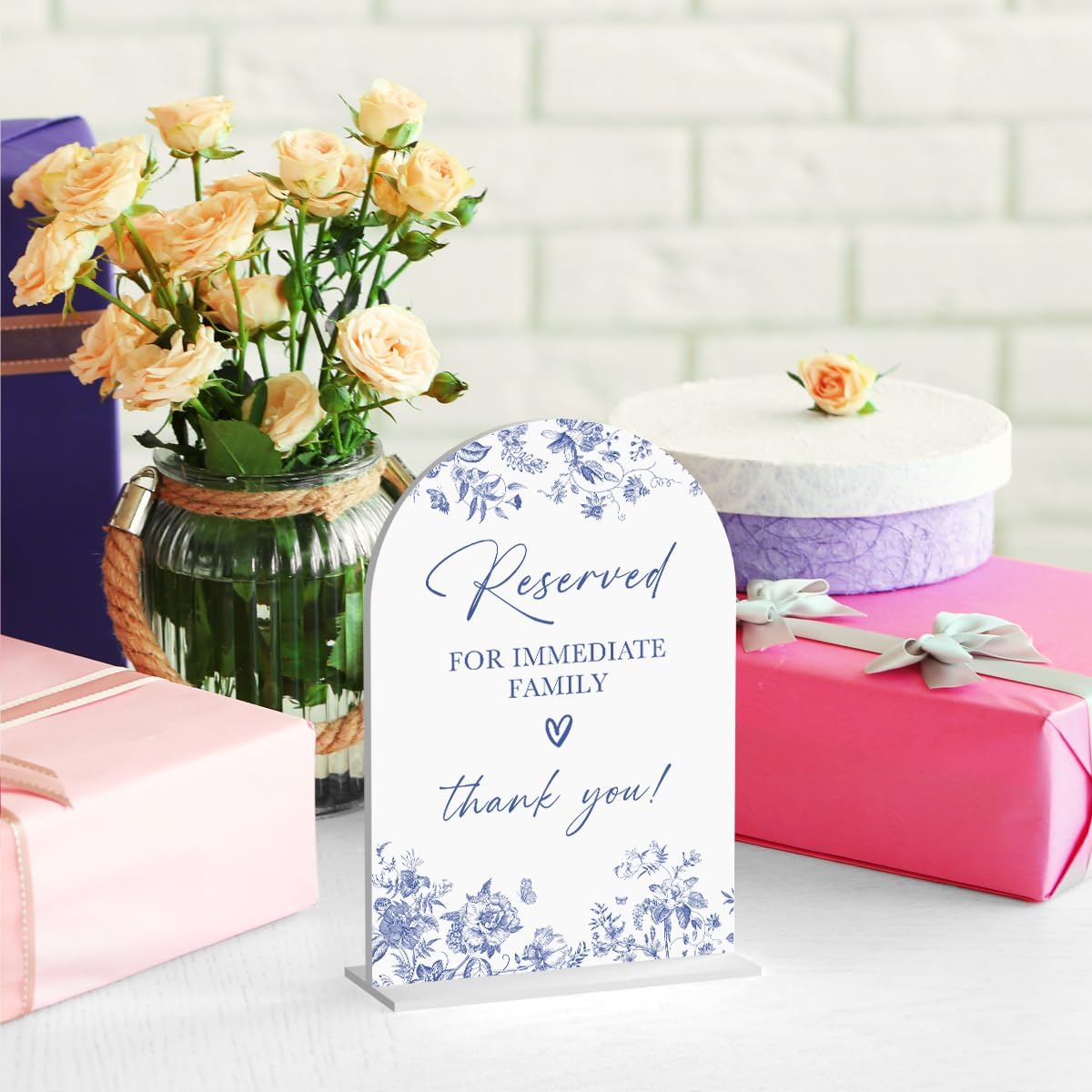 Acrylic Wedding Signs, Dusty Blue Wedding Decor, Blue Weddings Decor, Reserved for Immediate Family Signs for Reception, Modern Arch Acrylic Table Top Sign for Weddings Parties Dinners (White)