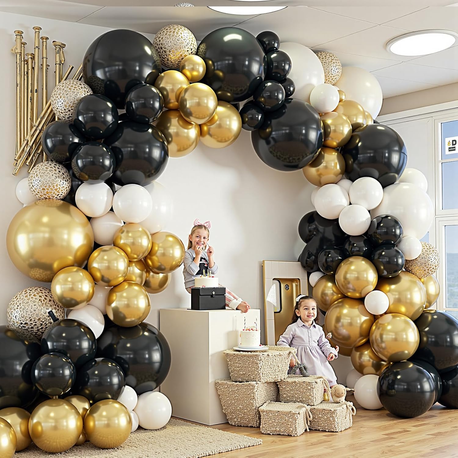 • EASY TO USE: You can black and gold balloon arch kit then assemble the balloon arch in the style you wants,black white gold balloons bring fun to your party and create a memorable party for your family and friend