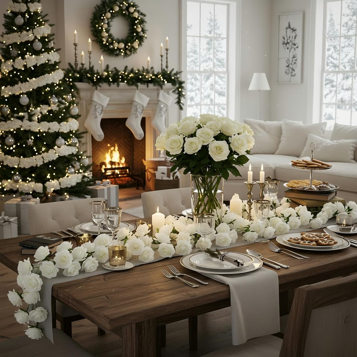 • Package Includes: you will receive 2 artificial white rose vines; Each rose garland is 6 feet long and diameter of each flower measures about 3.7 inches; Each rose wreath contains 62 white roses; If you feel that the length is not enough, you can connect multiple vines together for use