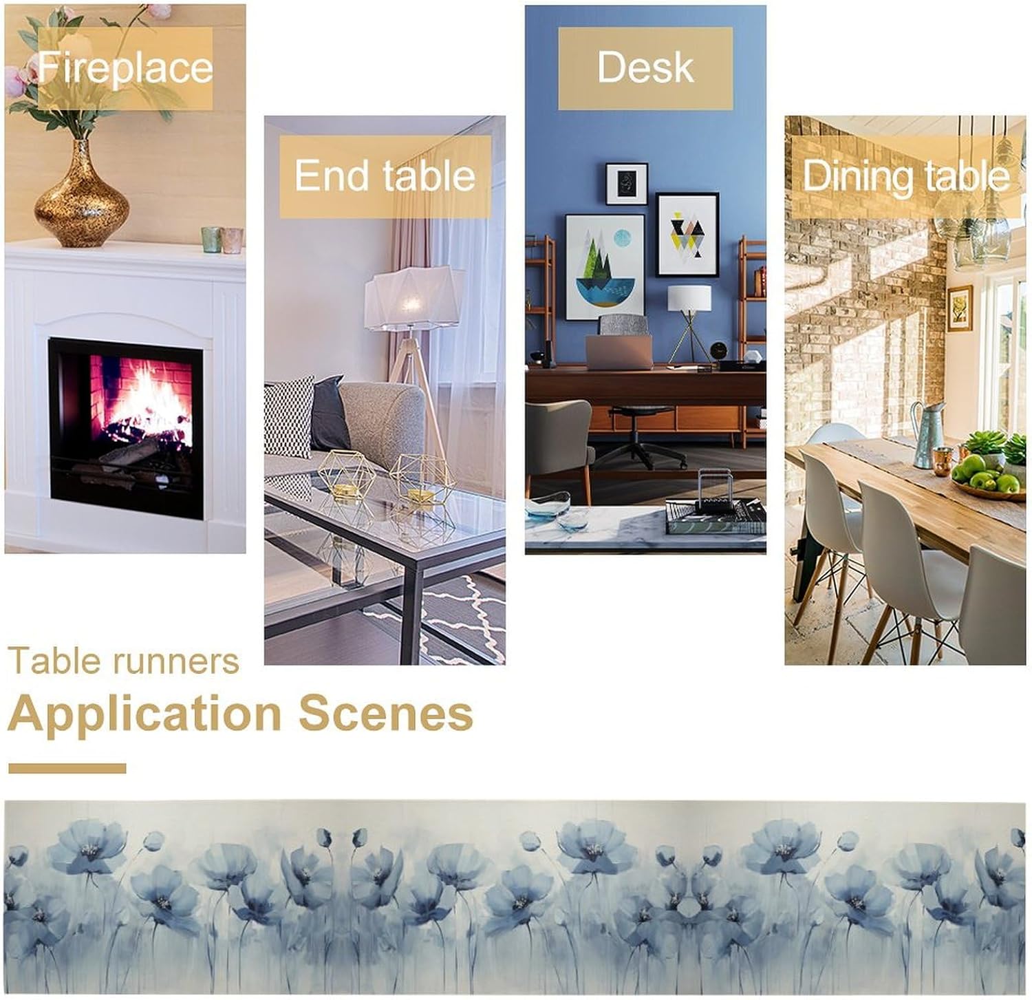 Abstract Floral Table Runner, Blue Poppy Flower Modern Art Print Kitchen Dinning Table Runner for Indoor Outdoor Home Wedding Party Holiday, 13x60 Inch