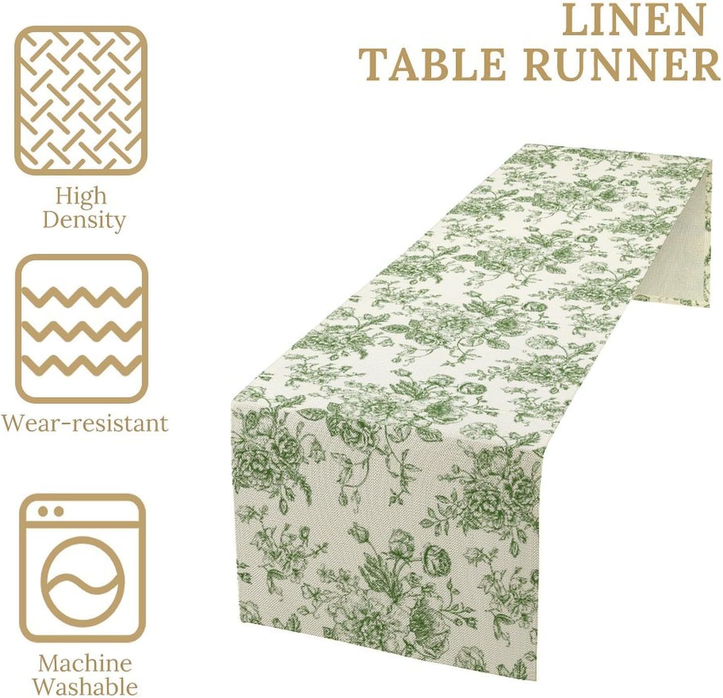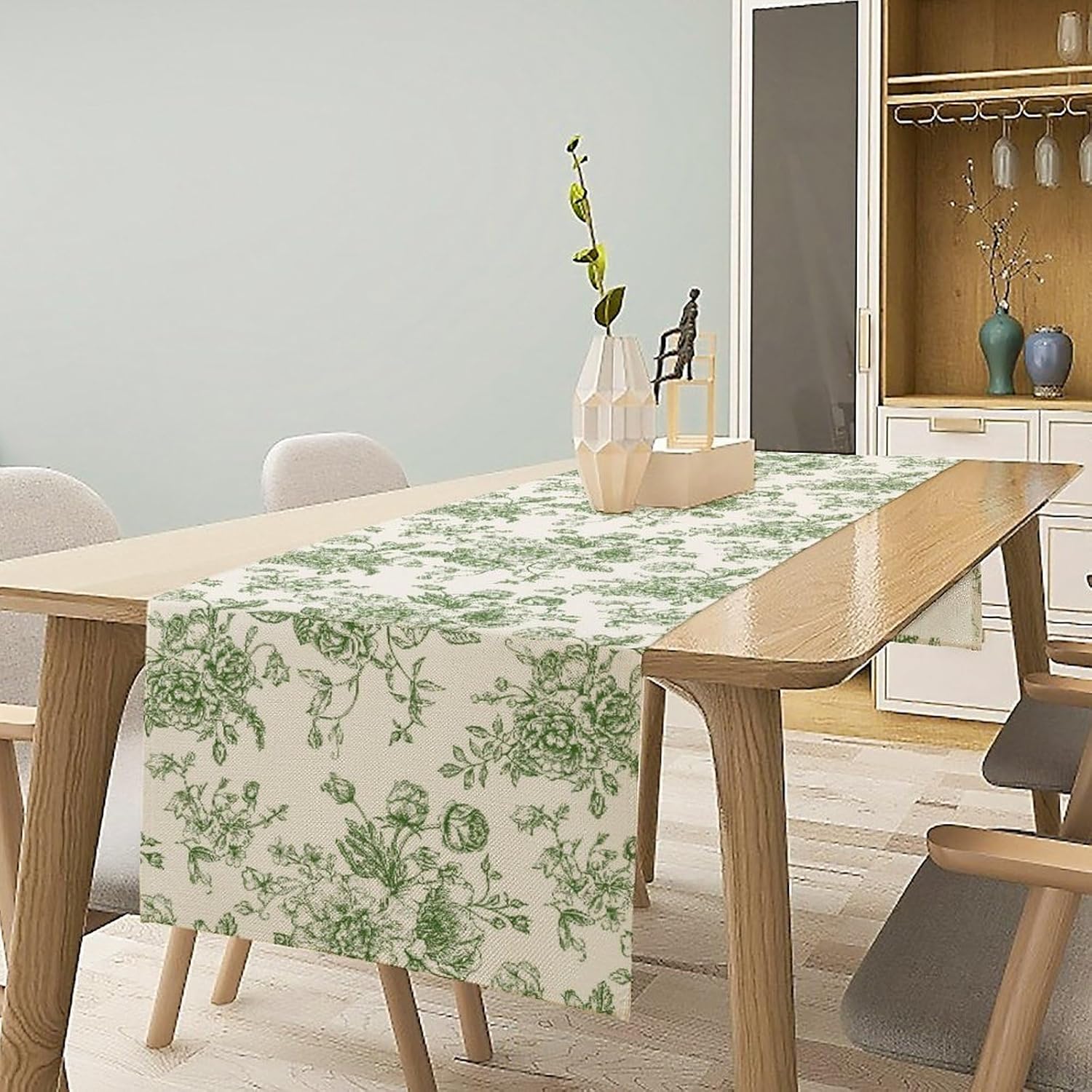 Vintage Flower Table Runner, Wildfloral Green Floral Sketch Pattern Print Table Runner for Kitchen Dinning Table Runner Decor Home Wedding Party Holiday, 13x36 Inch