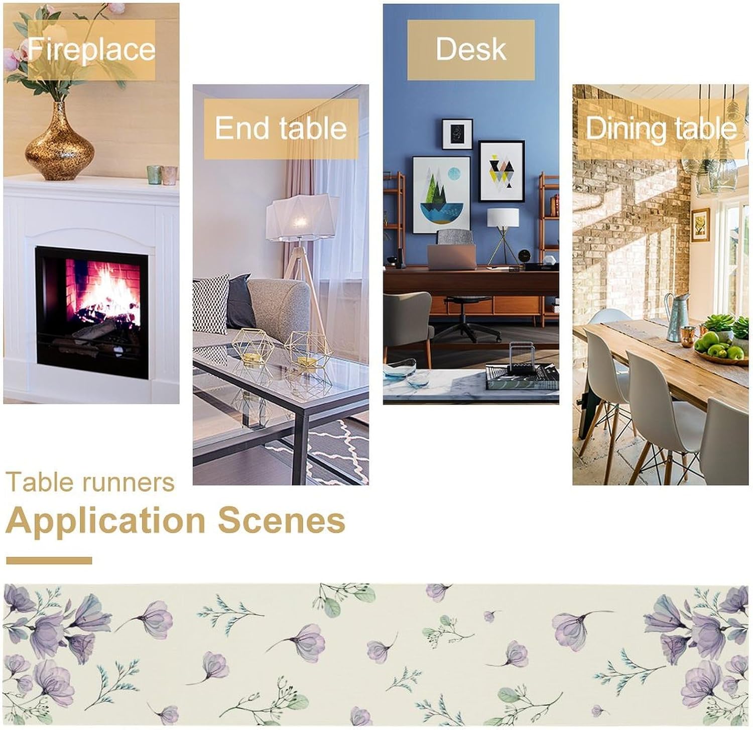 Poppy Flower Table Runner, Watercolor Purple Floral Leaves Seasonal Spring Summer Table Runner for Kitchen Dinning Table Runner Decor Home Wedding Party Holiday, 13x70 Inch