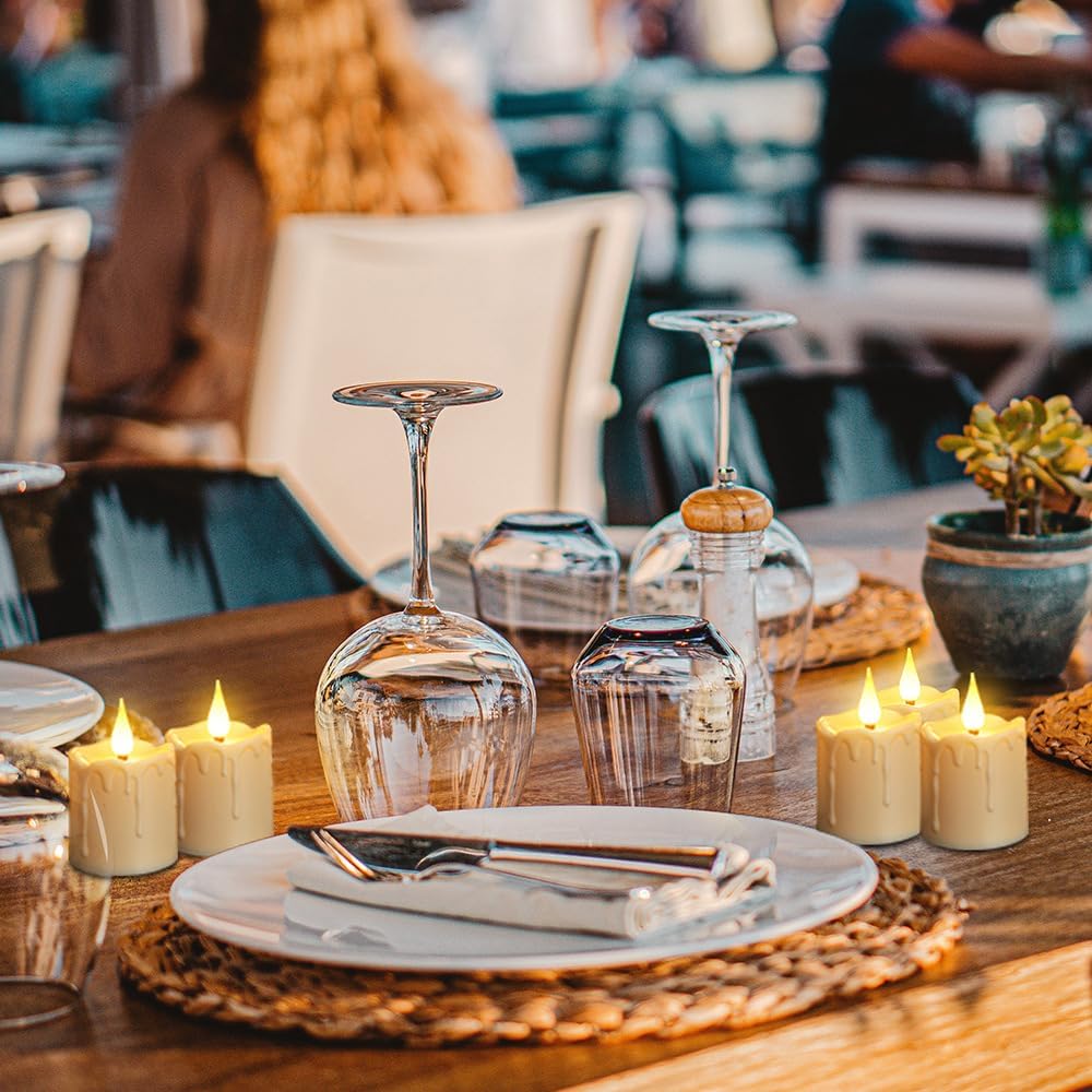 • 【Safe and Flameless】: These battery tea lights are clean, bright, and free from toxic substances. Enjoy the beauty of candlelight without the worry of flames or smoke. These flameless LED candles provide a safe alternative for all your romantic scenes, from weddings to anniversaries, ensuring a cozy atmosphere without the risks associated with real candles.