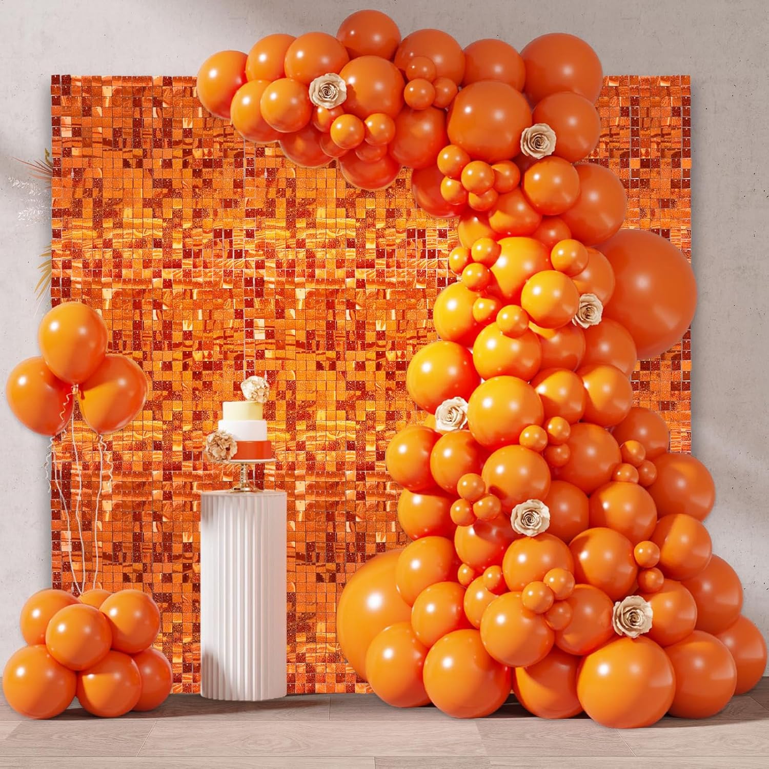 24PCS Orange Shimmer Wall Backdrop, Laser Square Sequin Photo Backdrops Panel, Glitter Wall Background for Birthdays, Weddings, Halloween, Engagements, Disco Bachelorette Party Decoration (4FTx6FT)