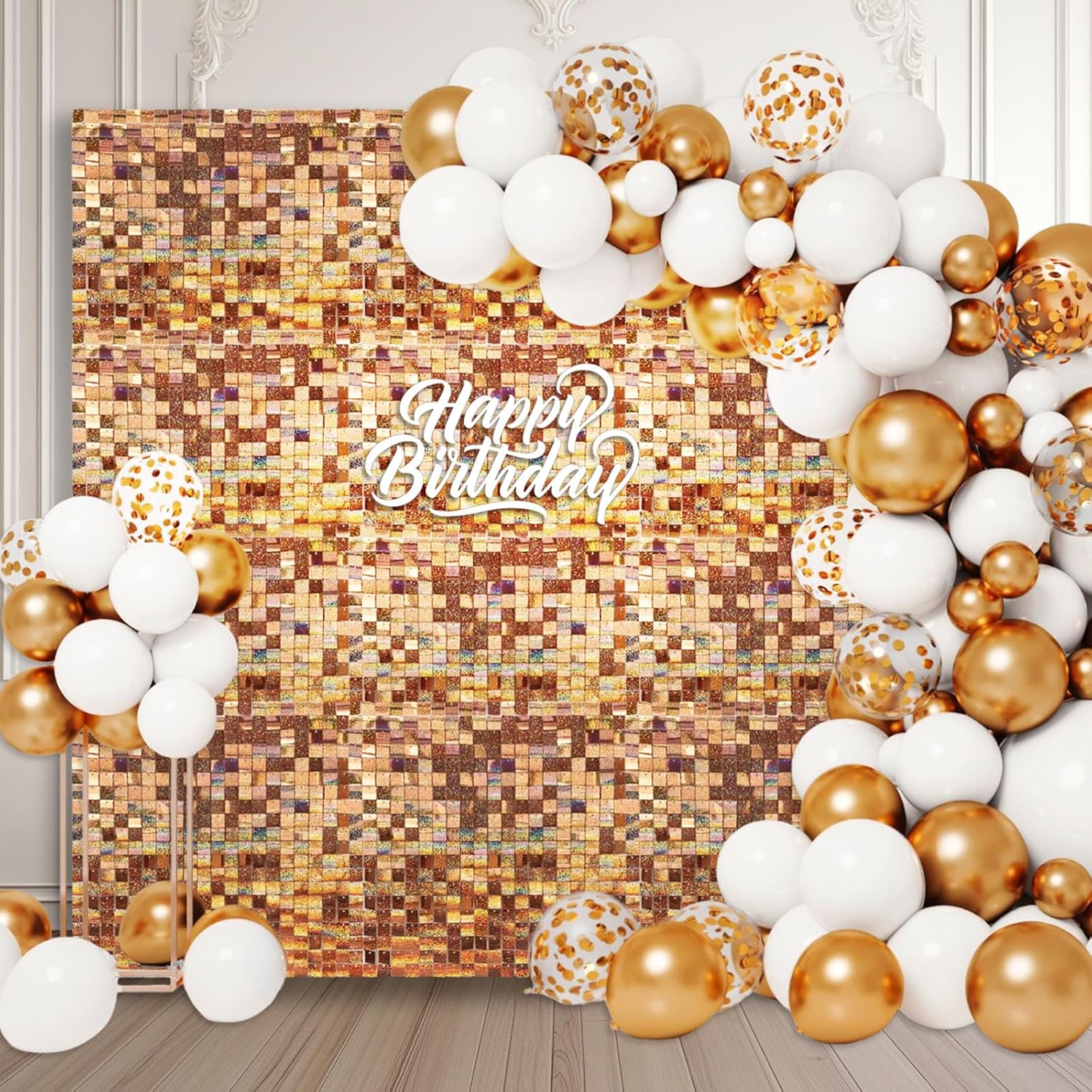 12PCS Champagne Shimmer Wall Backdrop, Laser Square Sequin Photo Backdrops Panel, Glitter Wall Background for Birthdays, Weddings, Christmas, Engagements, Disco Bachelorette Party Decoration (3FTx4FT)