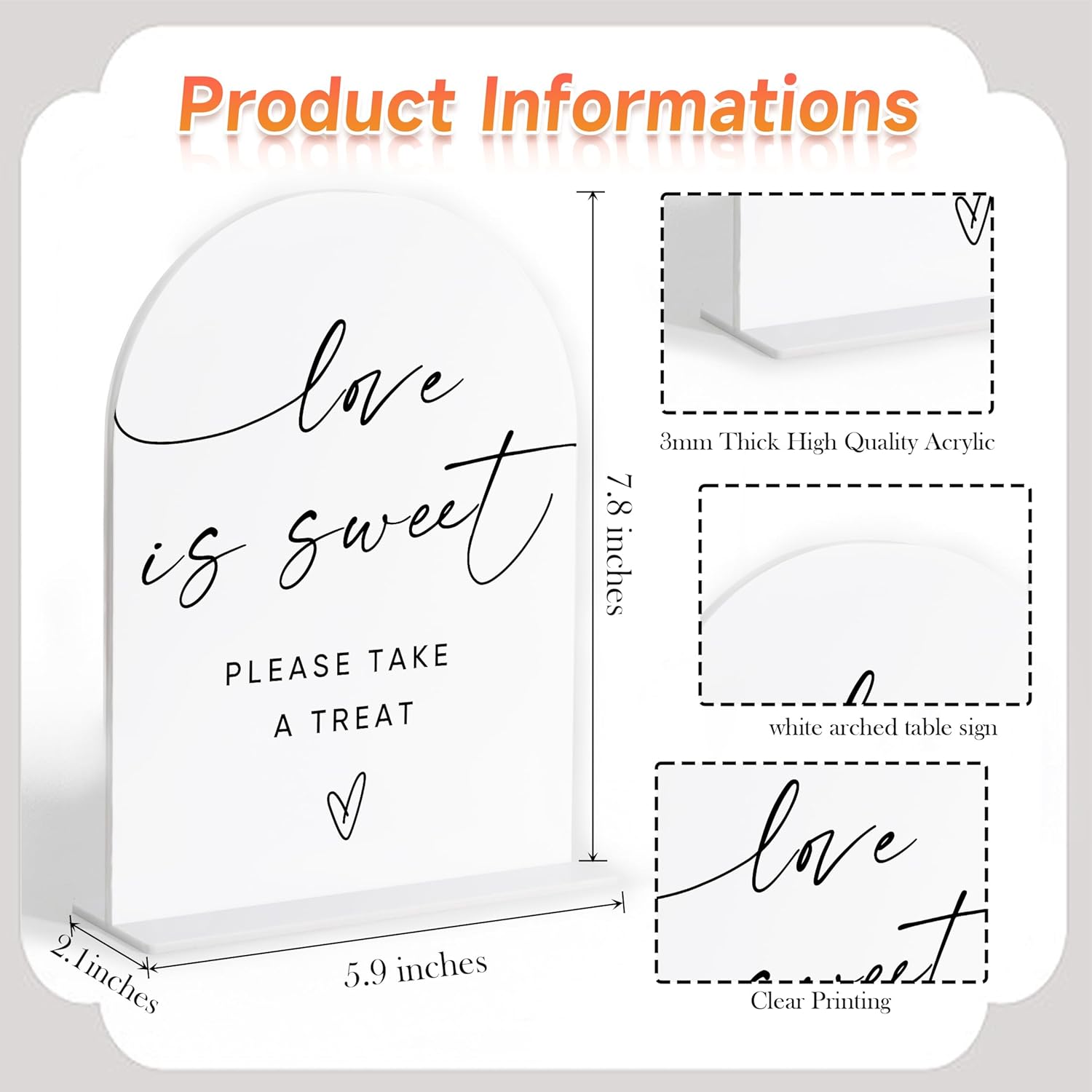 • Thoughtful Gift Idea: A wonderful wedding gift for friends or family. This white arch acrylic wedding sign adds a personal touch to engagement parties or bridal showers, making it a cherished keepsake.