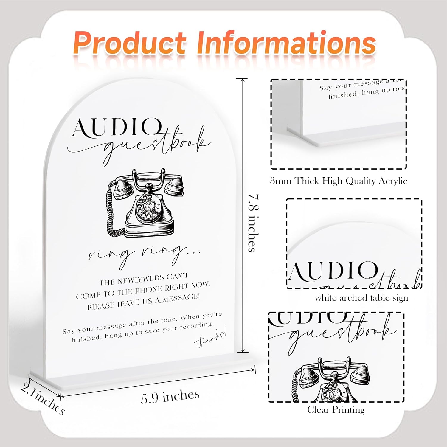 Audio Guest Book Sign, White Arch Acrylic Wedding Sign, Audio Guest Book Wedding Phone, Bridal Shower Decor, Engagement Party Decor, Centerpiece Table Decorations Party for Bride and Groom-25