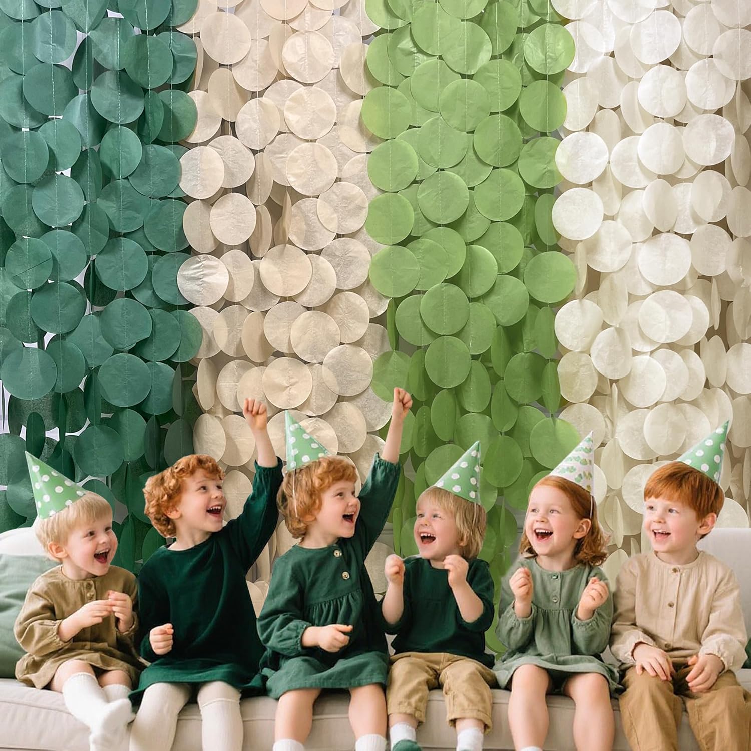 • Package Contains - 16 packs of sage green and beige party circle dot party garland banner,Each string is 12.8 feet with 30 pcs polka dots, Total is 205 feet.
