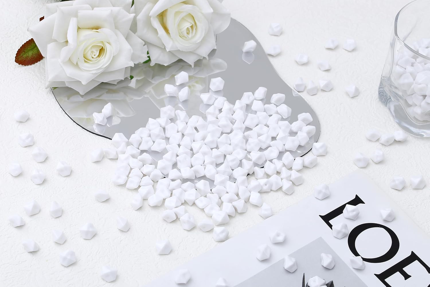• White Acrylic Ice Cubes – Each box includes 500 white fake ice cubes, approx 11–14mm irregular acrylic gems. White vase fillers are ideal for centerpieces, wedding décor, table scatter, and party styling. Their bright hue adds a clean, sophisticated touch to any event or home décor