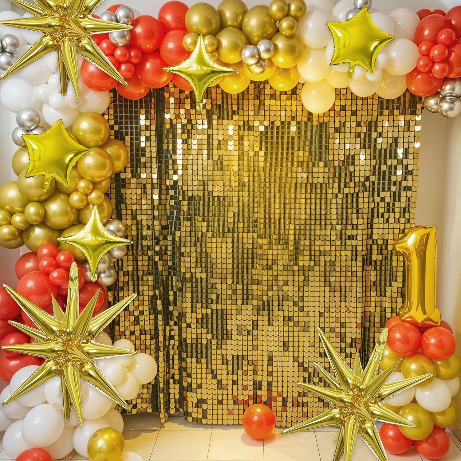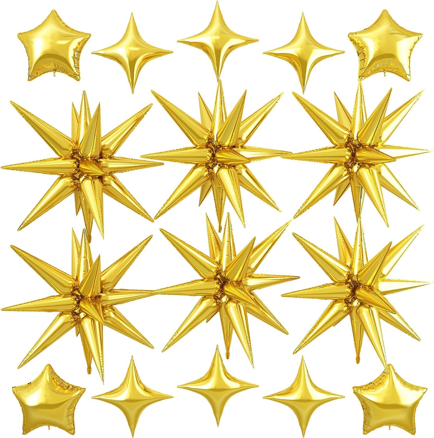 • Package: This set includes 6pcs 22inch gold explosion star foil balloons, 4pcs 10inch gold star foil balloons, 6pcs 10inch gold four angle star balloons, and a ribbon. Perfect for creating a dazzling party atmosphere.