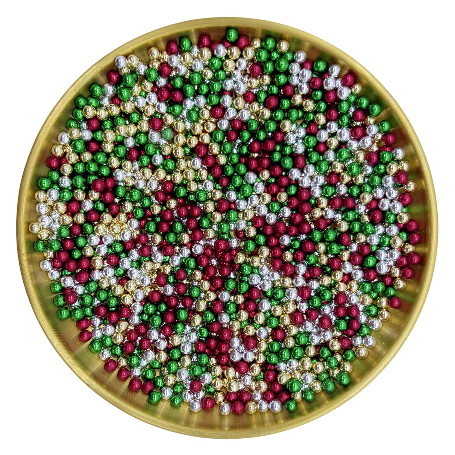 Edible Christmas Mixed Colour Pearl Sugar Sprinkles Candy 4mm Mini Pearls Cake Decorations Cupcake Toppers Cookie Decorating Perfect for Wedding Party Valentine Halloween Christmas Supplies 3OZ
