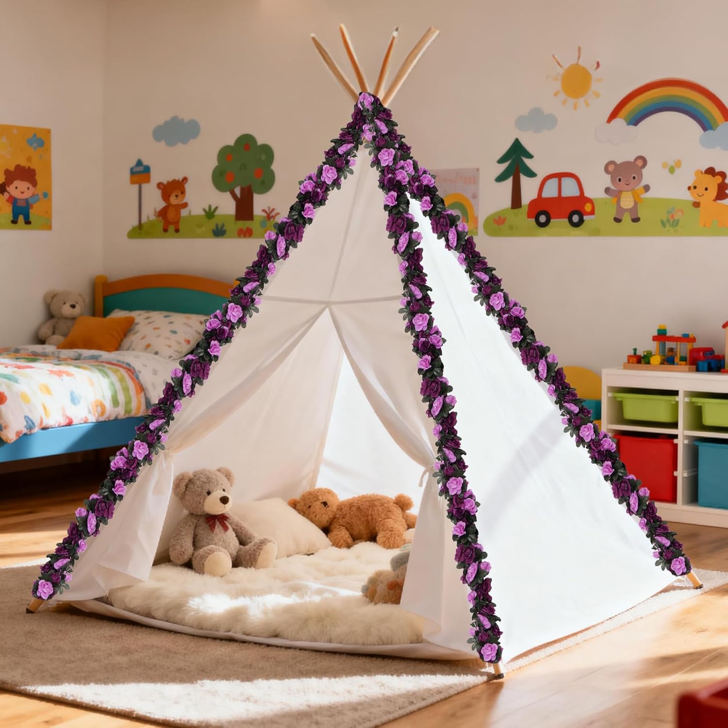 10 Pcs 82FT Flower Garland, Artificial Rose Garland Flowers Plants Fake Flower Hanging Rose Ivy, Birthday Party Valentine's Day Wedding Wall Arch Decor(Purple)