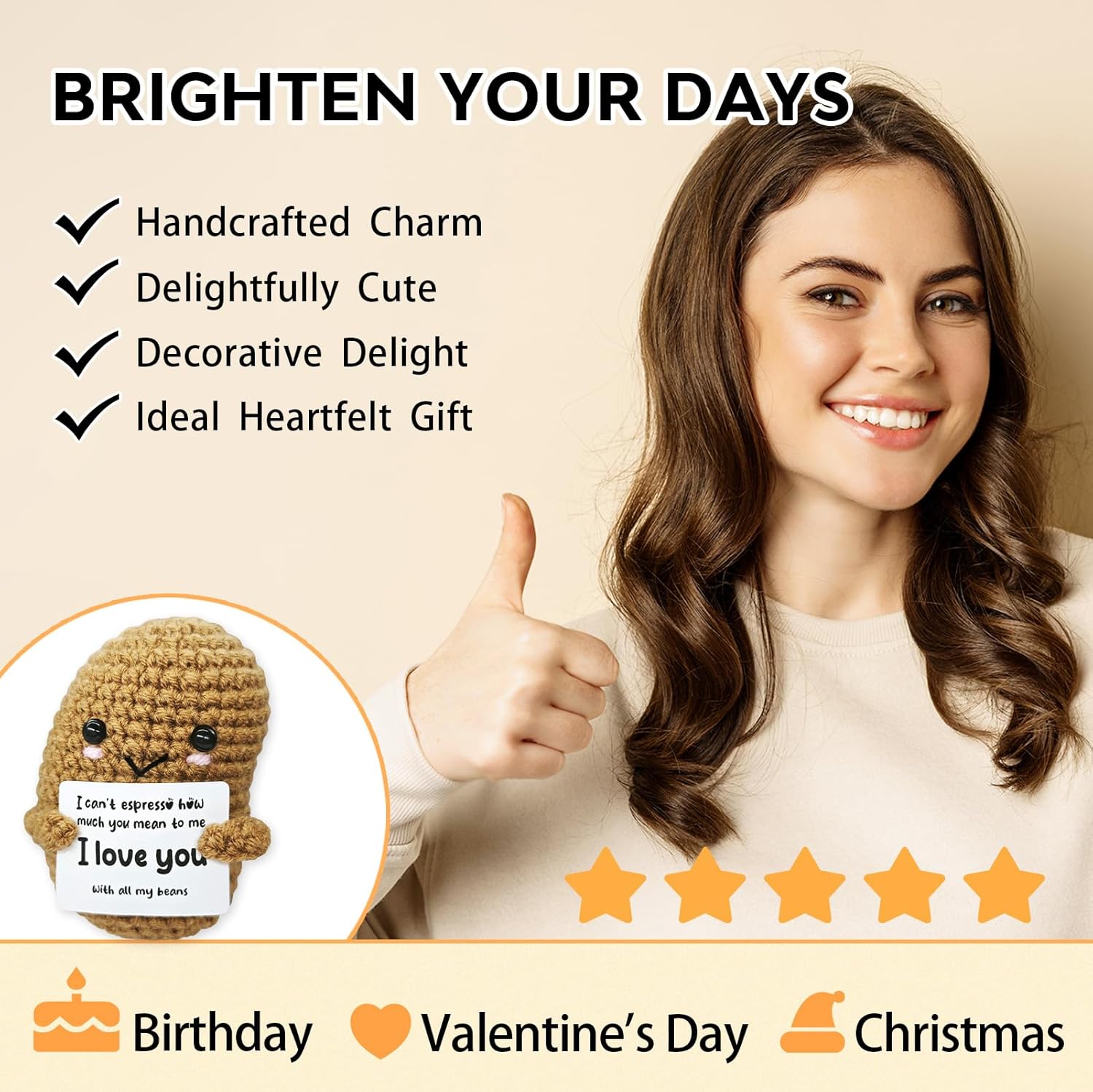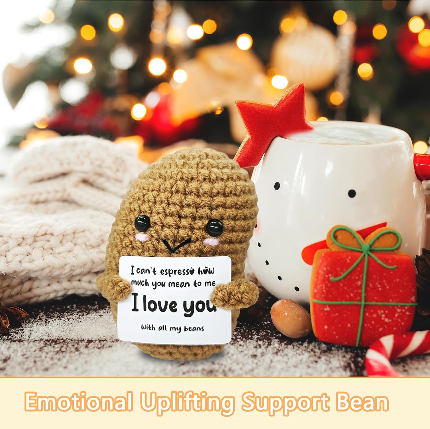 Handmade Crochet Beans-Charming Gift for Coffee Lovers!Barista Birthday Present,Cozy Emotional Support Gift,Custom Crochet Doll for Men & Women Who Adore Coffee