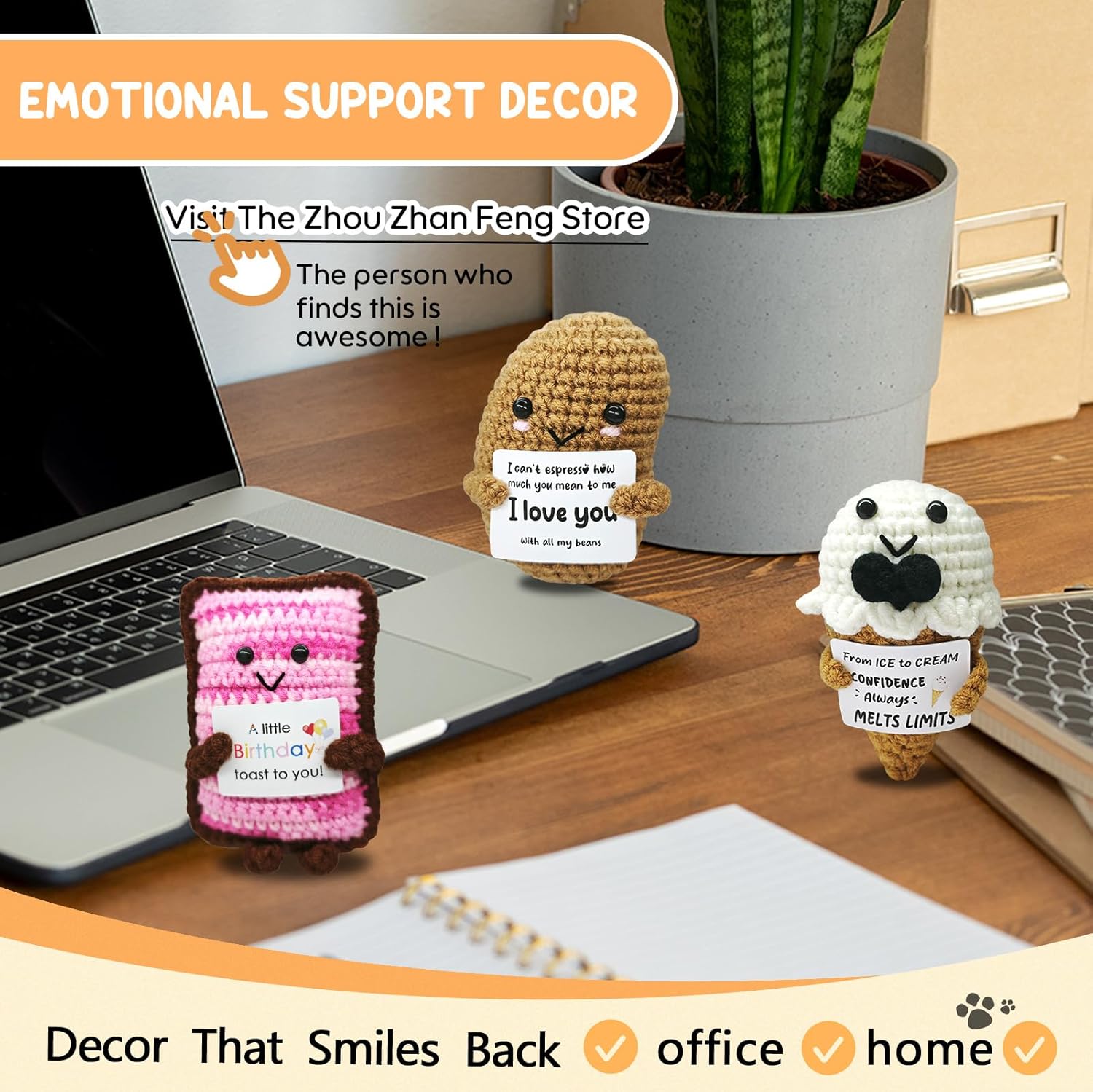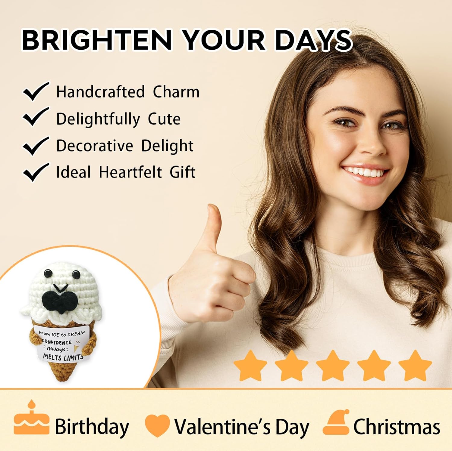 • 【Cheerful Crochet Friend】This handcrafted doll radiates positivity,offering comfort and joy in everyday life.Its uplifting presence reminds you to focus on the bright side,helping you stay hopeful and resilient during tough times.A little companion that strengthens the heart with warmth and optimism