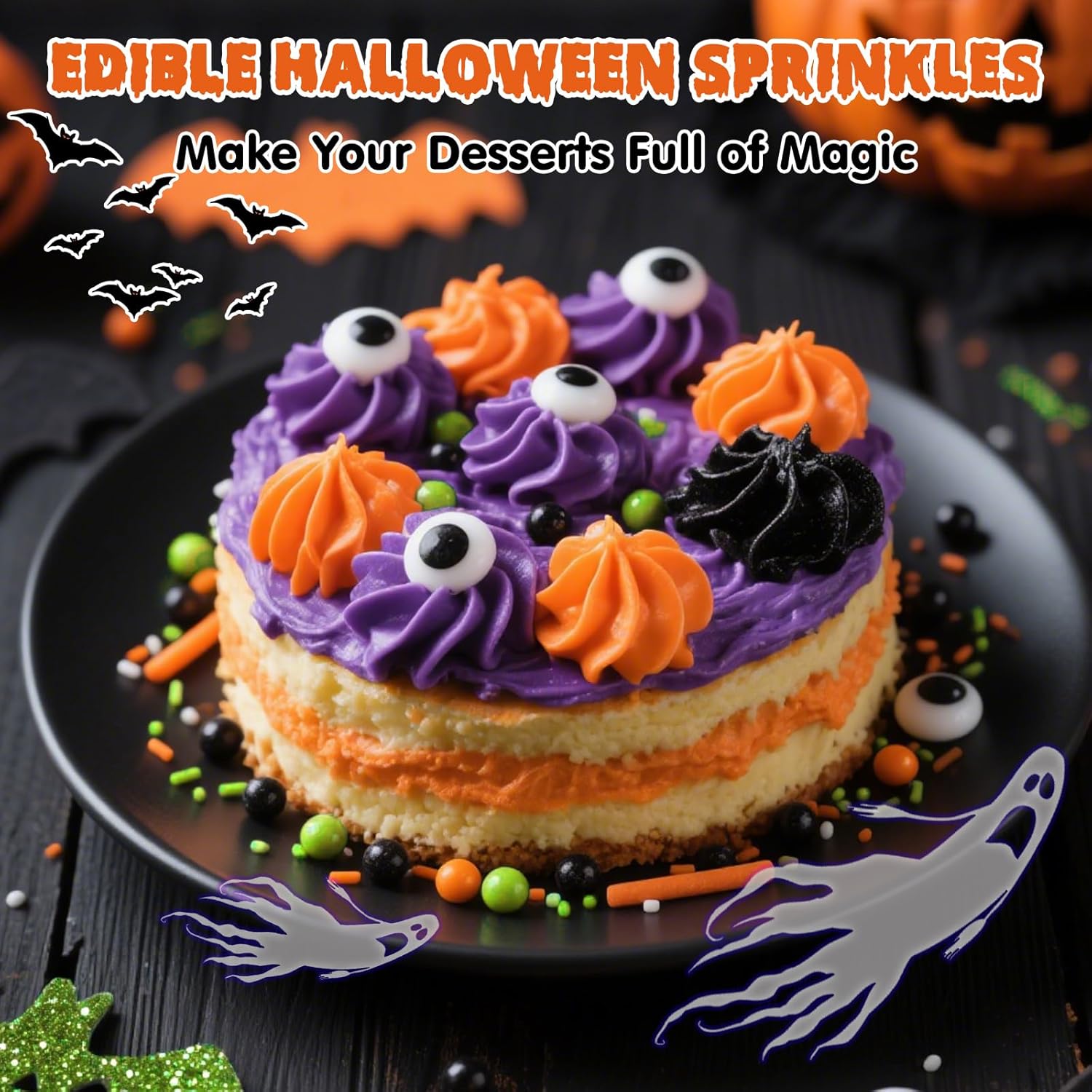 • Edible Halloween Terrifying Sprinkles with food-grade raw materials: Preservative Free,Nut Free, Dairy Free, Chemical Free,Soy Free,Non-GMO.Produced using food-safe standards, the process does not come into contact with allergenic substances and uses Tamper-proof food label.They're just as safe as they are tasty
