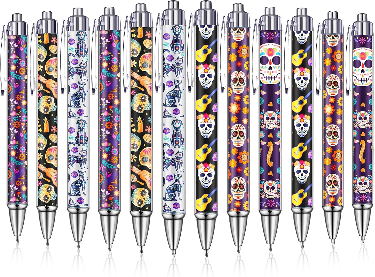 • Classic Skull Pattern: these skull pens are printed with classic colorful sugar skull characters; Ideal for honoring the dead and a wonderful memory of traditional mexican festivals; Ideal for Halloween, mexican birthday parties as gifts