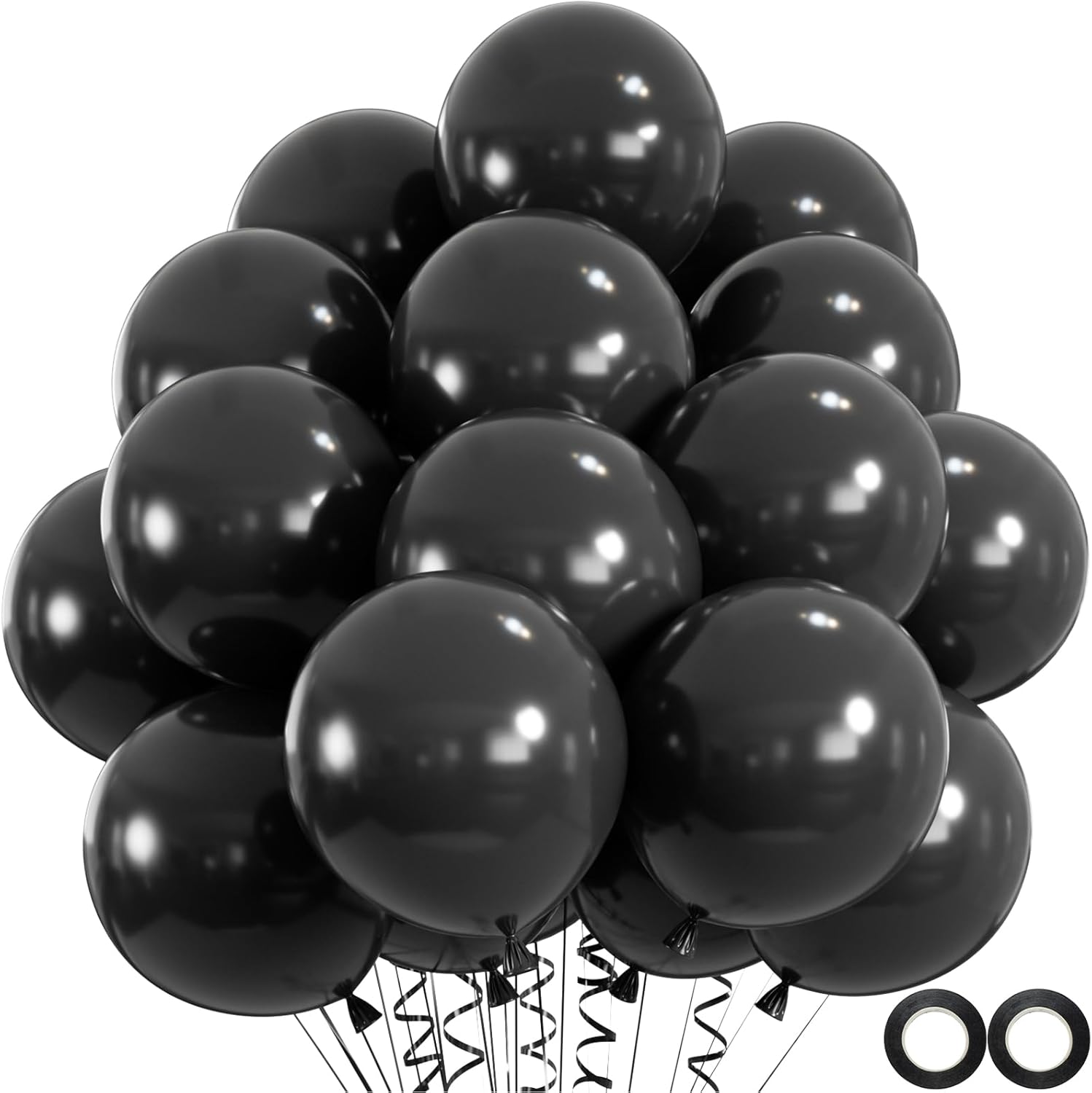 • 【WHAT YOU WILL GET】100pcs 12 inch latex party balloons in black color +2 rolls of black ribbons