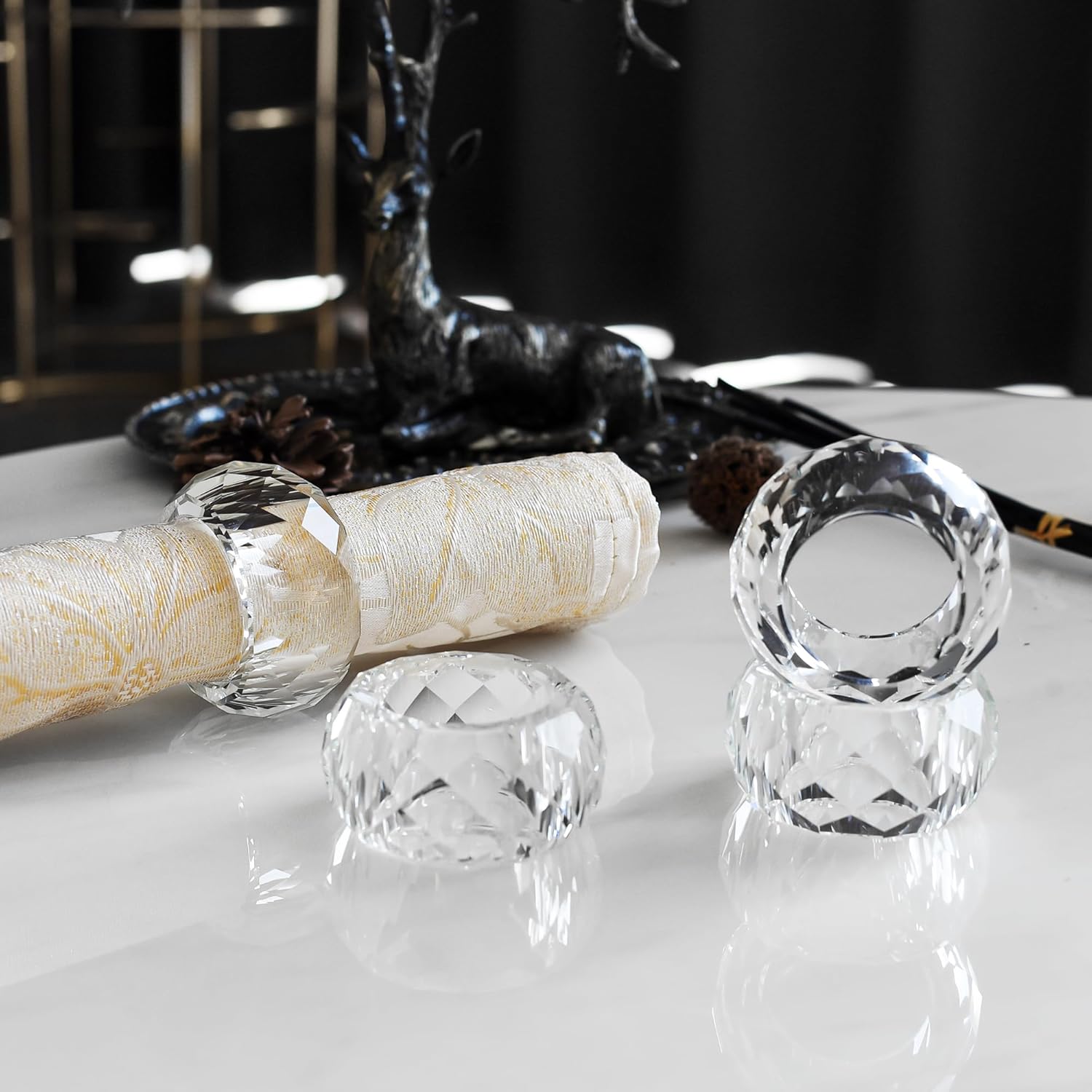 • Each crystal napkin rings is exquisitely diamond cut and polished, making it sparkle on every side and look smooth and transparent