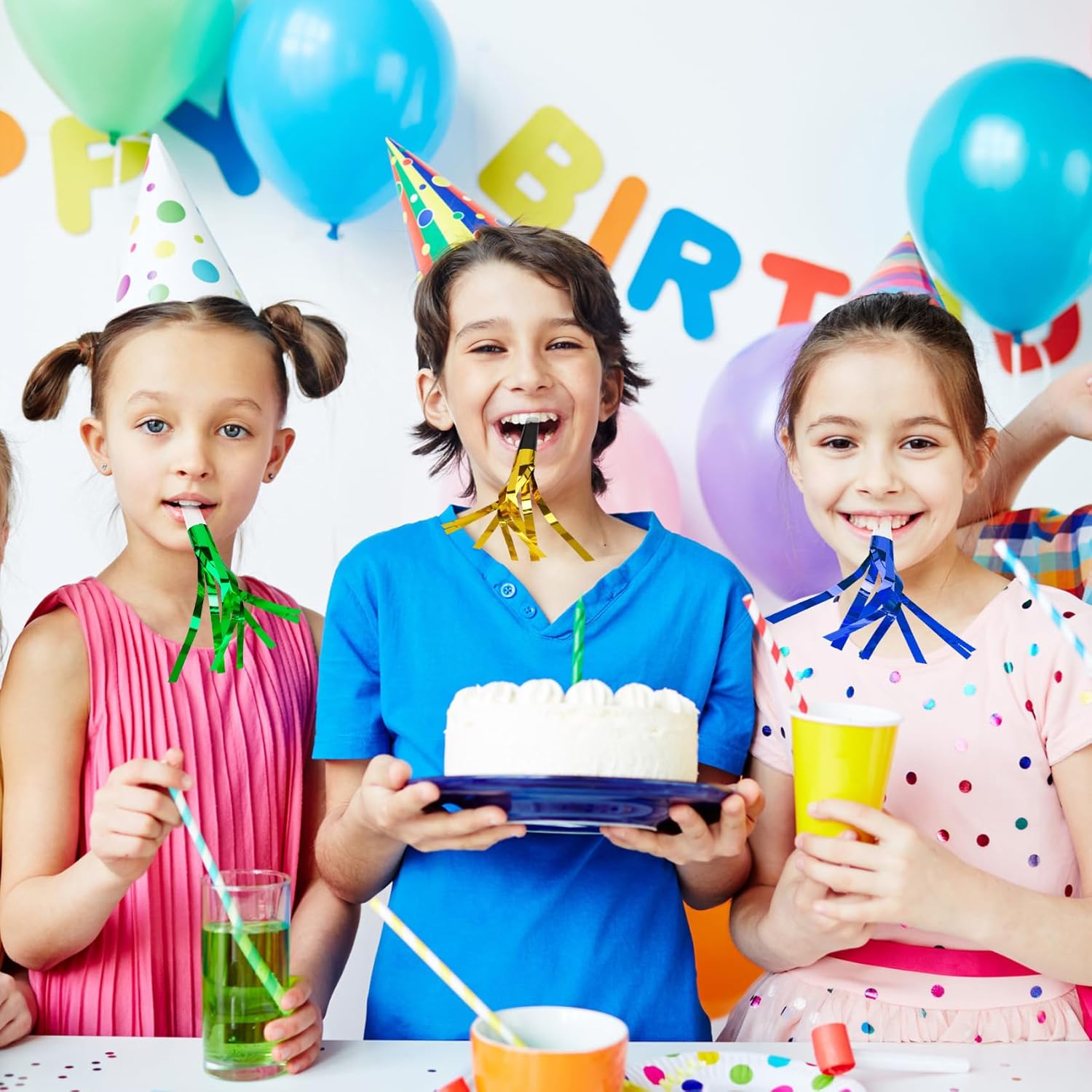 • Packaged Included: You will get 24pcs glitter metallic fringed party blowers, each new years noise makers measuring approximately 6.3 inches in total length (including tassel), this lightweight design makes those noise makers easy to carry, ensuring that party blowers for kids will be enough quantities for your birthday parties or family gatherings celebrations.