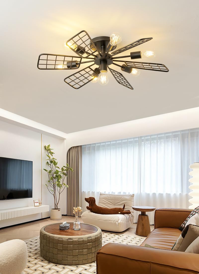 • 💚Why choose us?【MODERN DESIGN】: Unique geometry design ceiling light fixture featuring Fan-shaped veneer in matte black finish for contemporary farmhouse style
