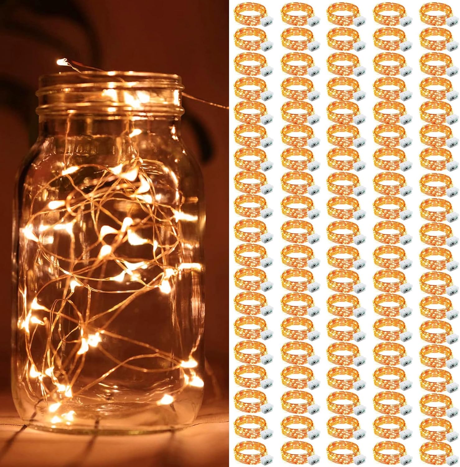 • IP65 WATERPROOF AND INDIVIDUALLY WRAP: The battery fairy lights are waterproof can be used for Indoor/Outdoor. (the battery pack is not waterproof) safe to the touch. Made of soft bendable wire so you can easily bend into any shape or wrapped it on anything such as Christmas trees, wine bottle, pumpkins, guirlande lumineuse interieure, potted landscape etc.Each light is individually packaged, say goodbye to cable tangles and bring more happiness and satisfaction to your family and friends