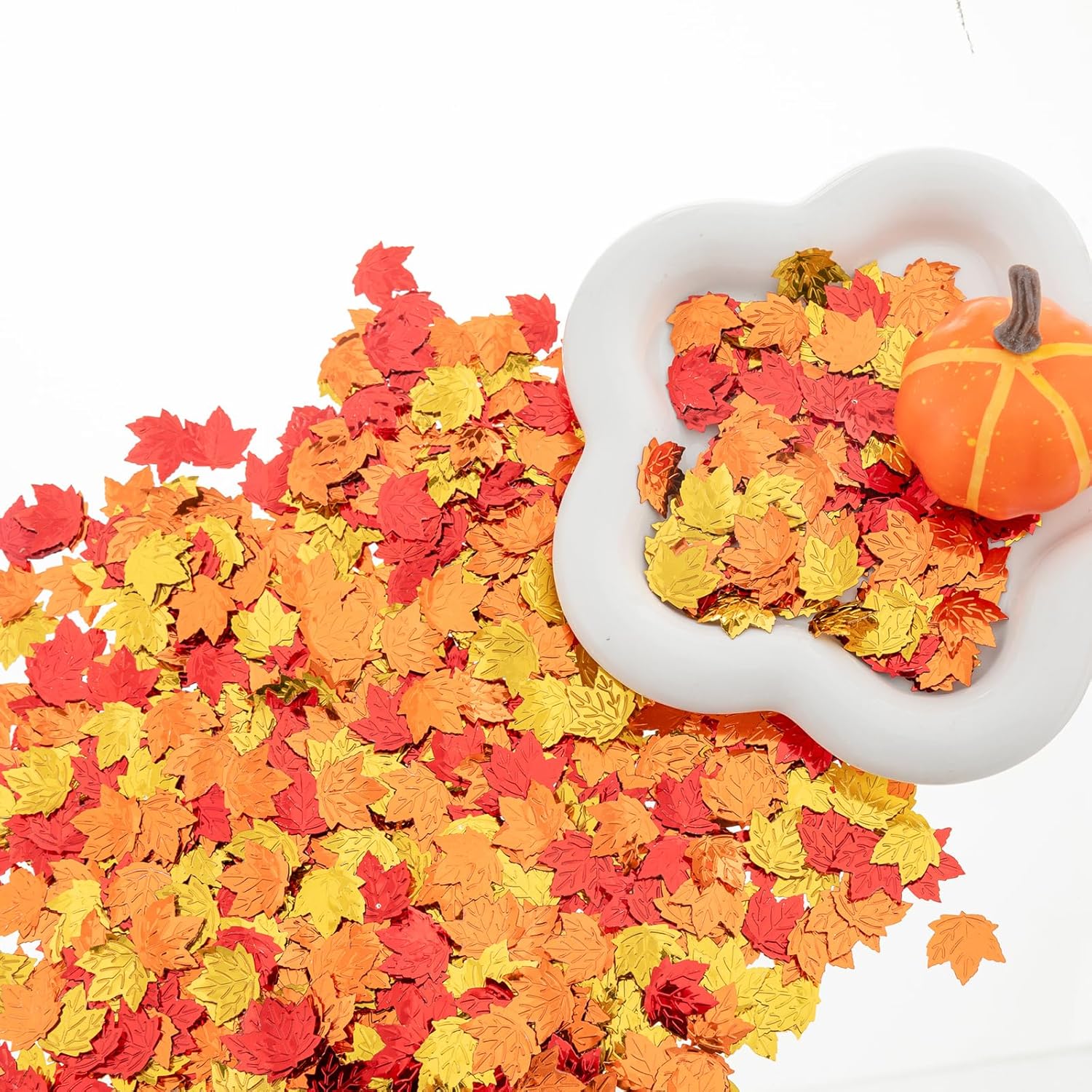 • Package Included: You will get 100g/3.53oz glitter maple leaf confetti in 3 different colors,about more than 800pcs fall table confetti in one package. Sufficient quantity to meet your needs for Thanksgiving party decorations.Add more festival atmosphere to your home and party